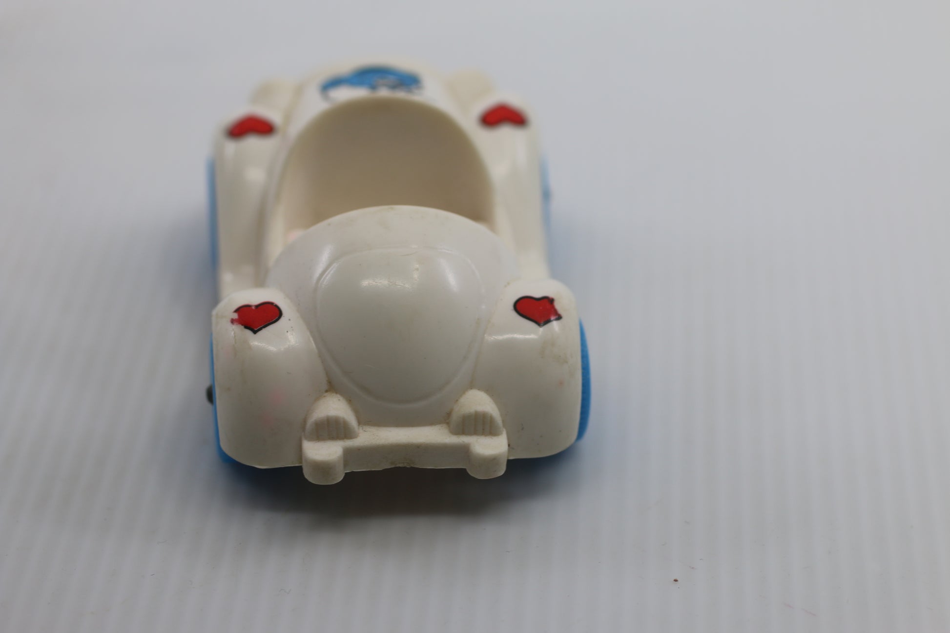 Vintage Smurfs Plastic Toy Car White Blue Wheels European 1970s 1980s Loose