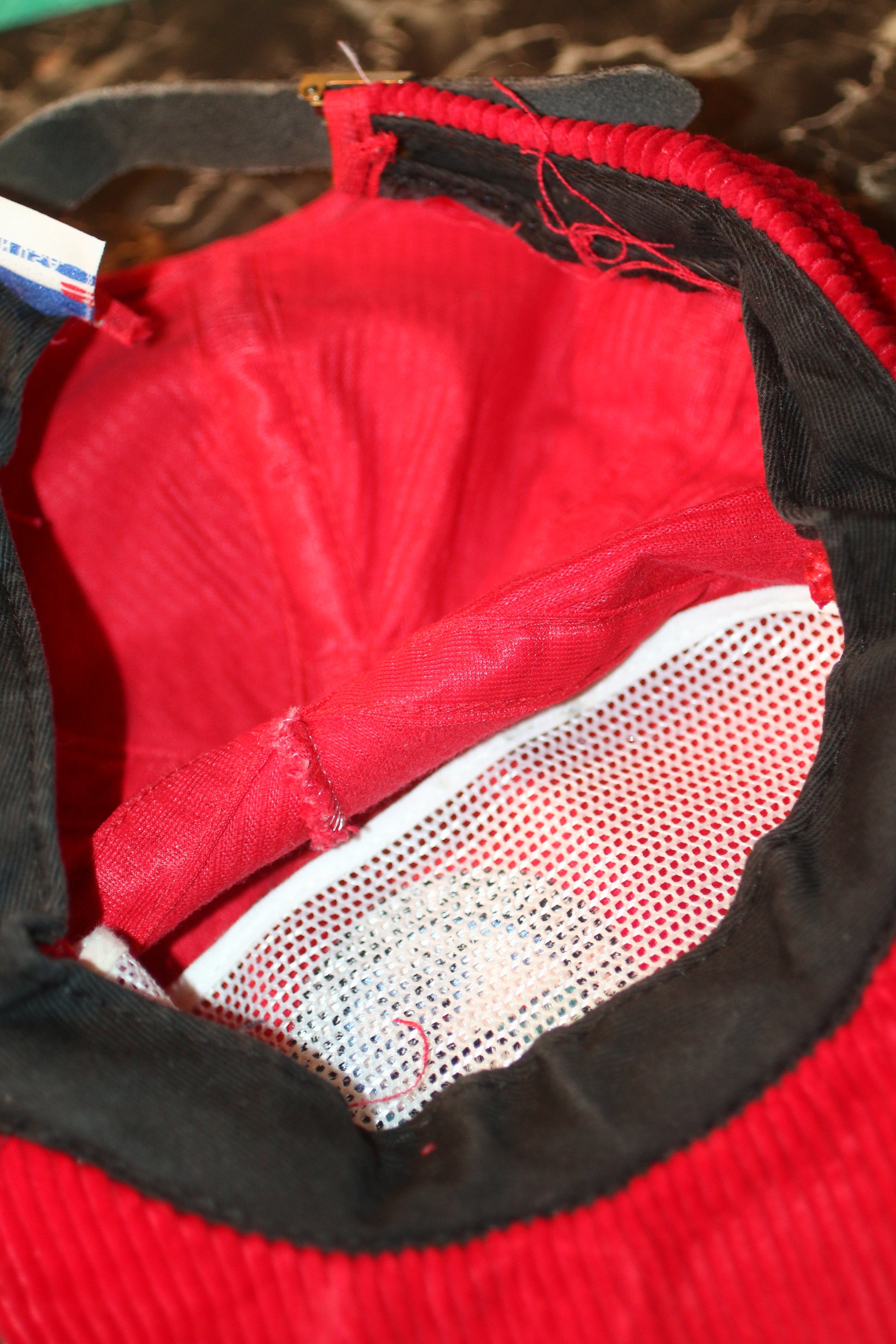 Vintage Red Corduroy Strapback Hat Moose Mountain Elk Lodge Outdoor USA Made