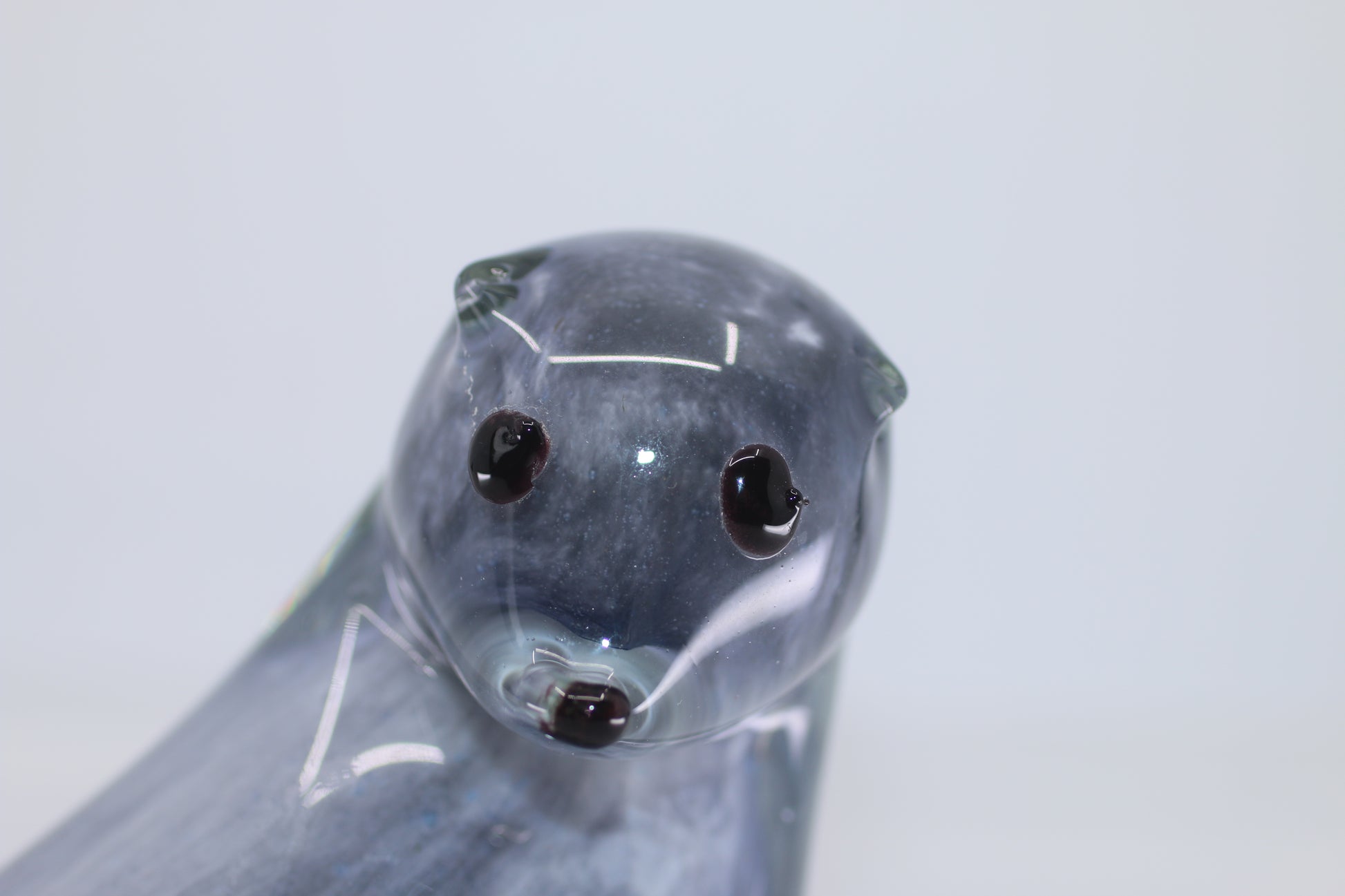 Hand Blown Art Glass Seal Gray Cased Figurine Paperweight