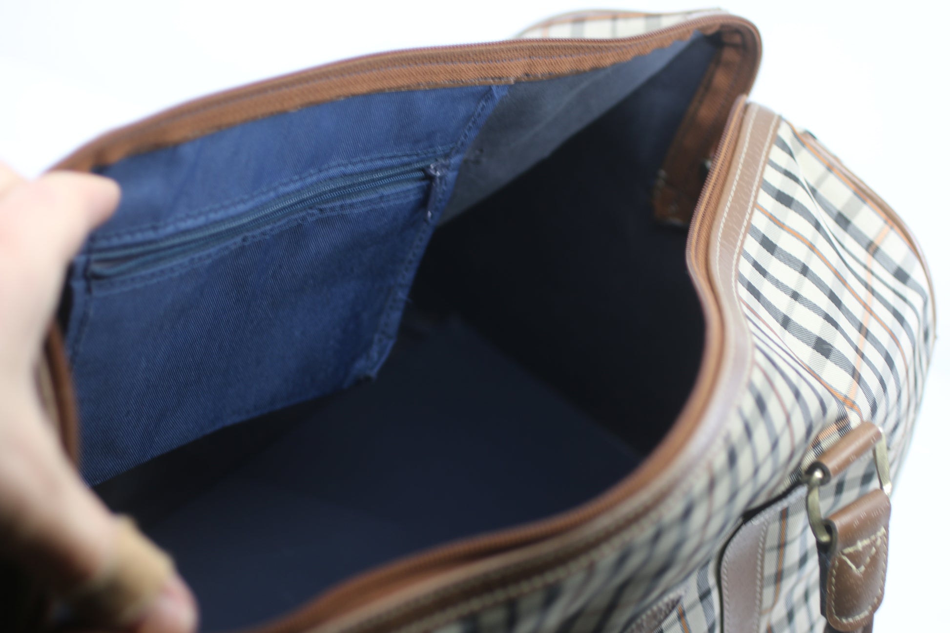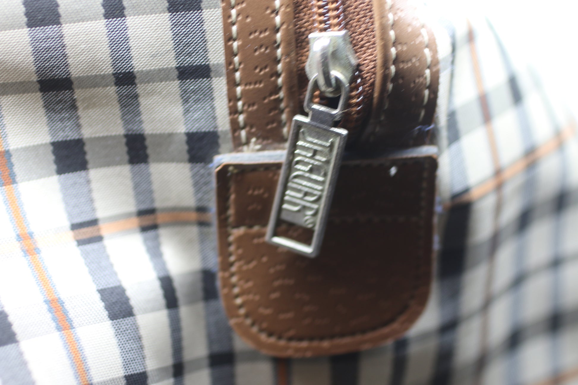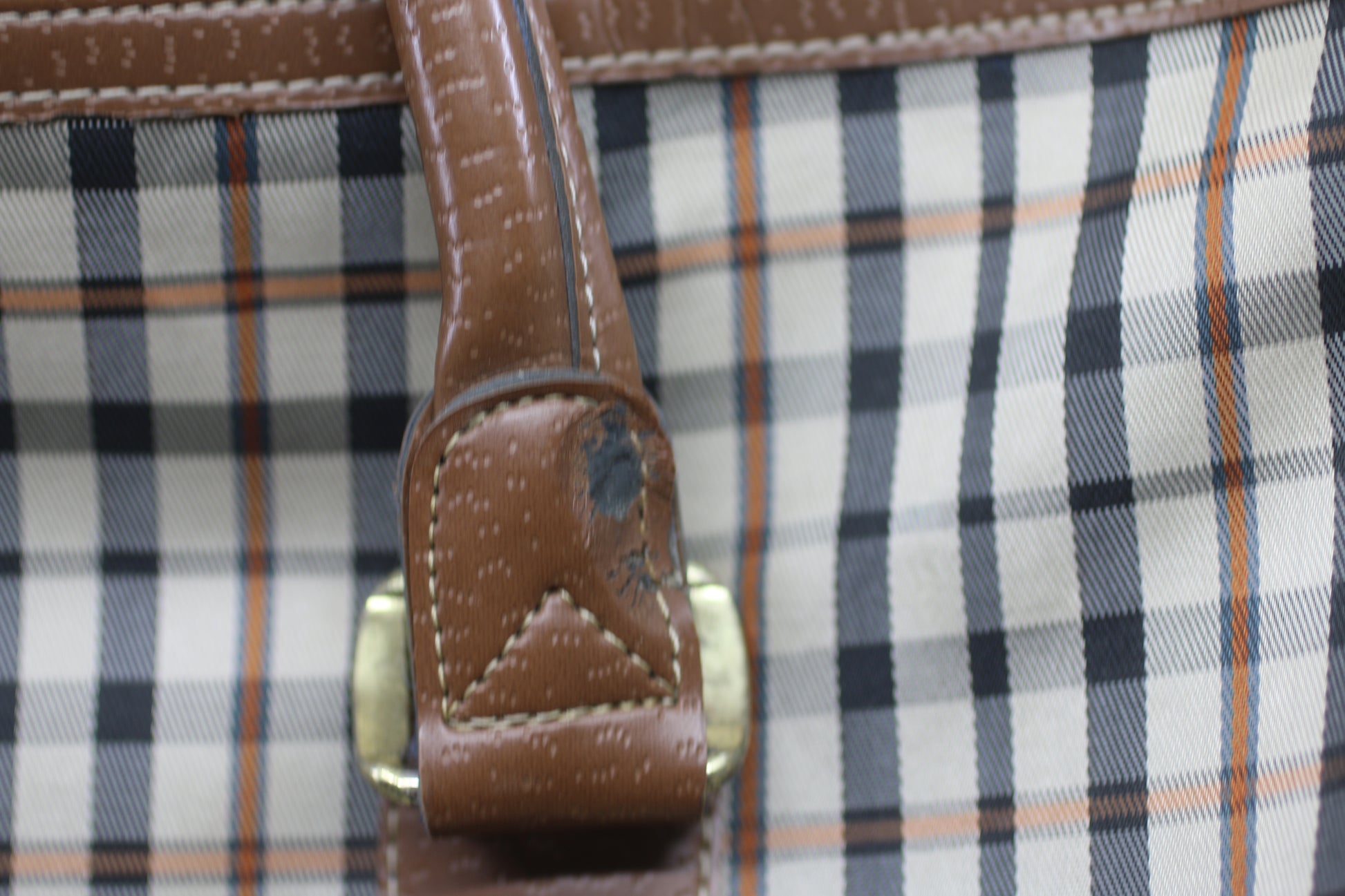Vintage JAGUAR Plaid Duffle Bag Brown Leather Trim Travel Weekend Bag 80s 90s