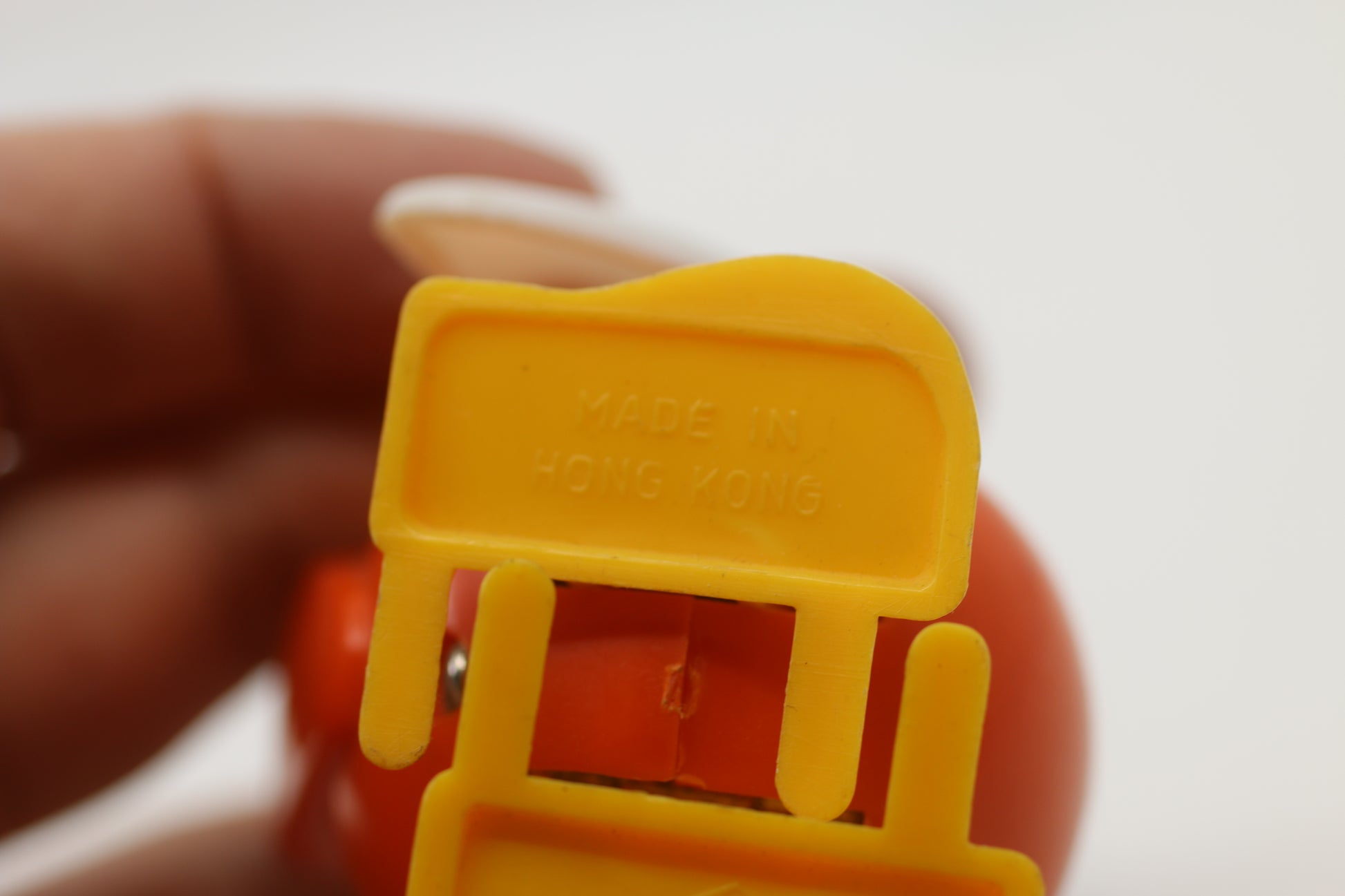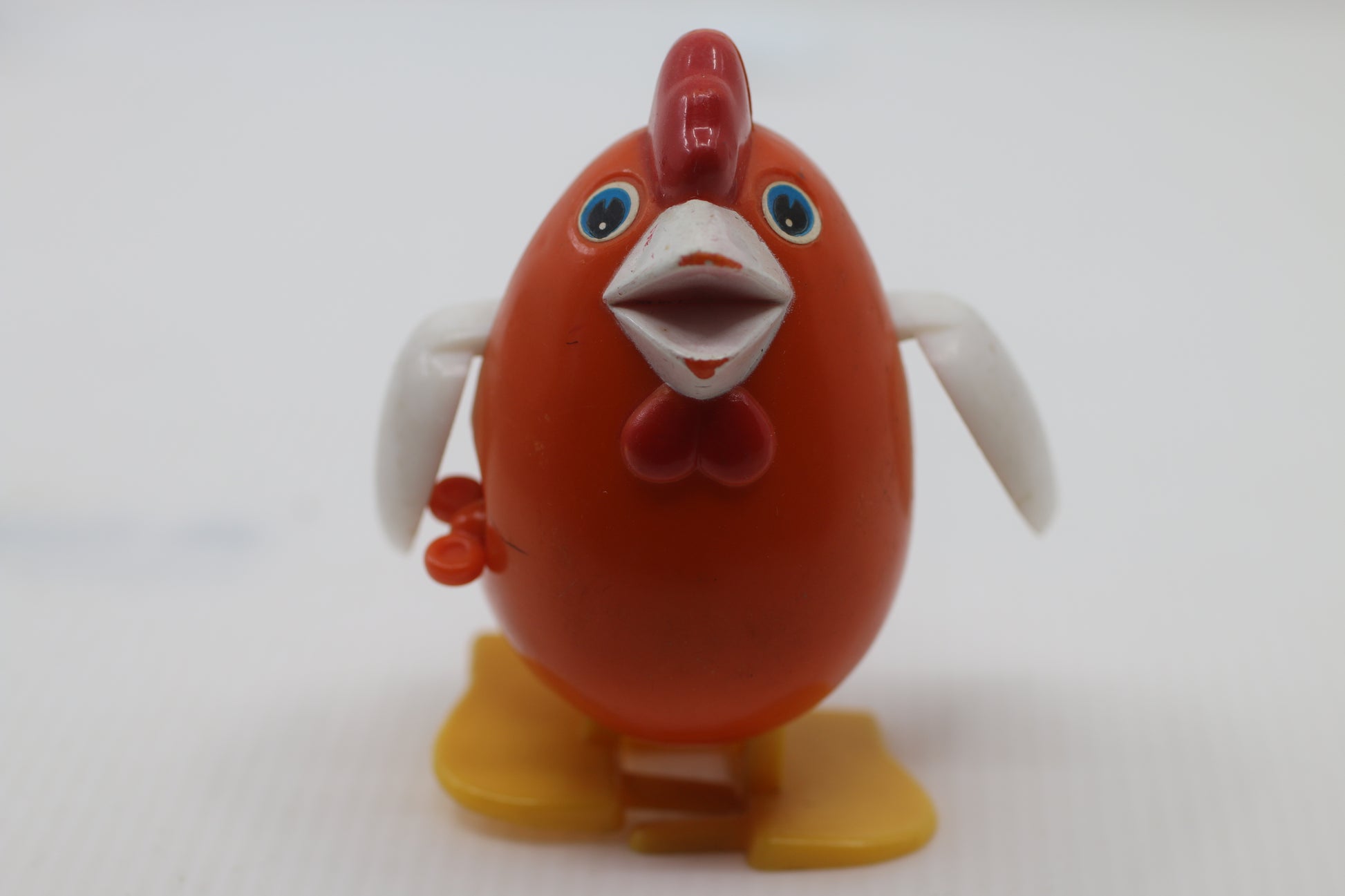 Vintage Orange Wind-Up Chicken Walking & Wings Flapping Toy By KN Of Hong Kong