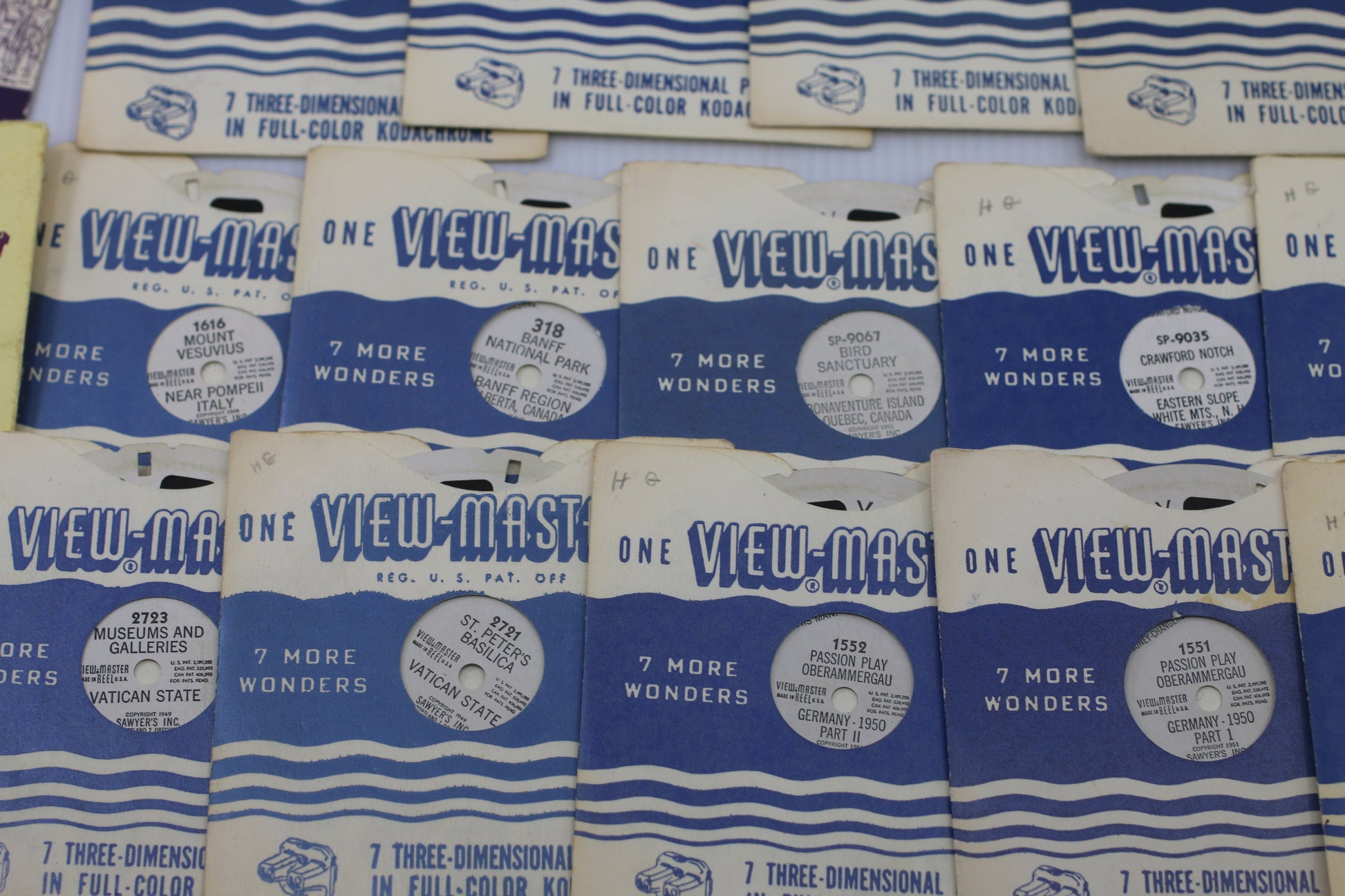 154 Atlantic City New Jersey USA155 Miss America Beauty pageant Atlantic city New Jersey, USA1550 Passion Play Oberammergau Germany - 1950 Tableaux1551 Passion Play Oberammergau Germany - 1950 Part. II1552 Passion Play Oberammergau Germany - 1950 Part. II1606 Venice Italy1608 Florence Italy1616 Mount Vesuvius Near Pompeii Italy165 Miami Florida USA2014 Lucerne Switzerland2721 St. Peter's Basilica Vatican State2723 Museums and galleries Vatican State2726 Holy Year 1950 Vatican State277 Autumn foliage of New England311 Vancouver British Columbia Canada318 Banff National Park Banff Region Alberta, Canada319 Banff National Park Lake Louise Region Alberta, Canada332 The Mardi Gras New Orleans, Louisiana USA388 Gaspe Peninsula Quebec Canada405 The Coronation of Queen Elizabeth II London, England June 2, 1953 - I406 The Coronation of Queen Elizabeth II London, England June 2, 1953 - II4820 Buddhist Temples of Bangkok Siam511 Acapulco Mexico530 Panama city Panama577 Scenes of Cuba597 Nassau BahamasFT. 1 Little Red Riding HoodFT.4 Snow white and the seven dwarfsSP-9016 Cranmore MTN. Skimbolie Tramway White Mountains N.H. USASP-9024 Rock City Gardens Lookout Mountains Tenn. USASP-9035 Crawford Notch Easterne Slope White MTS., N.H.SP-9067 Bird Sanctuary Bonaventure Island Quebec, Canada