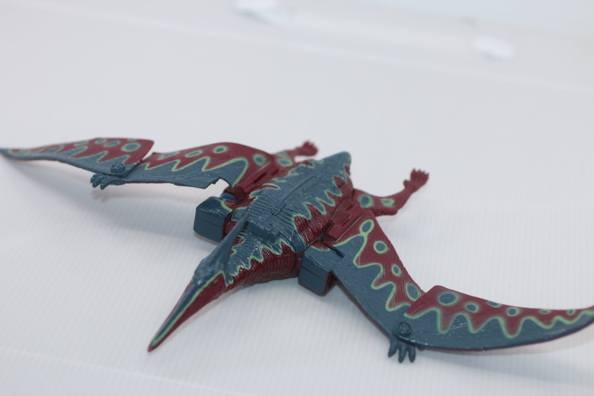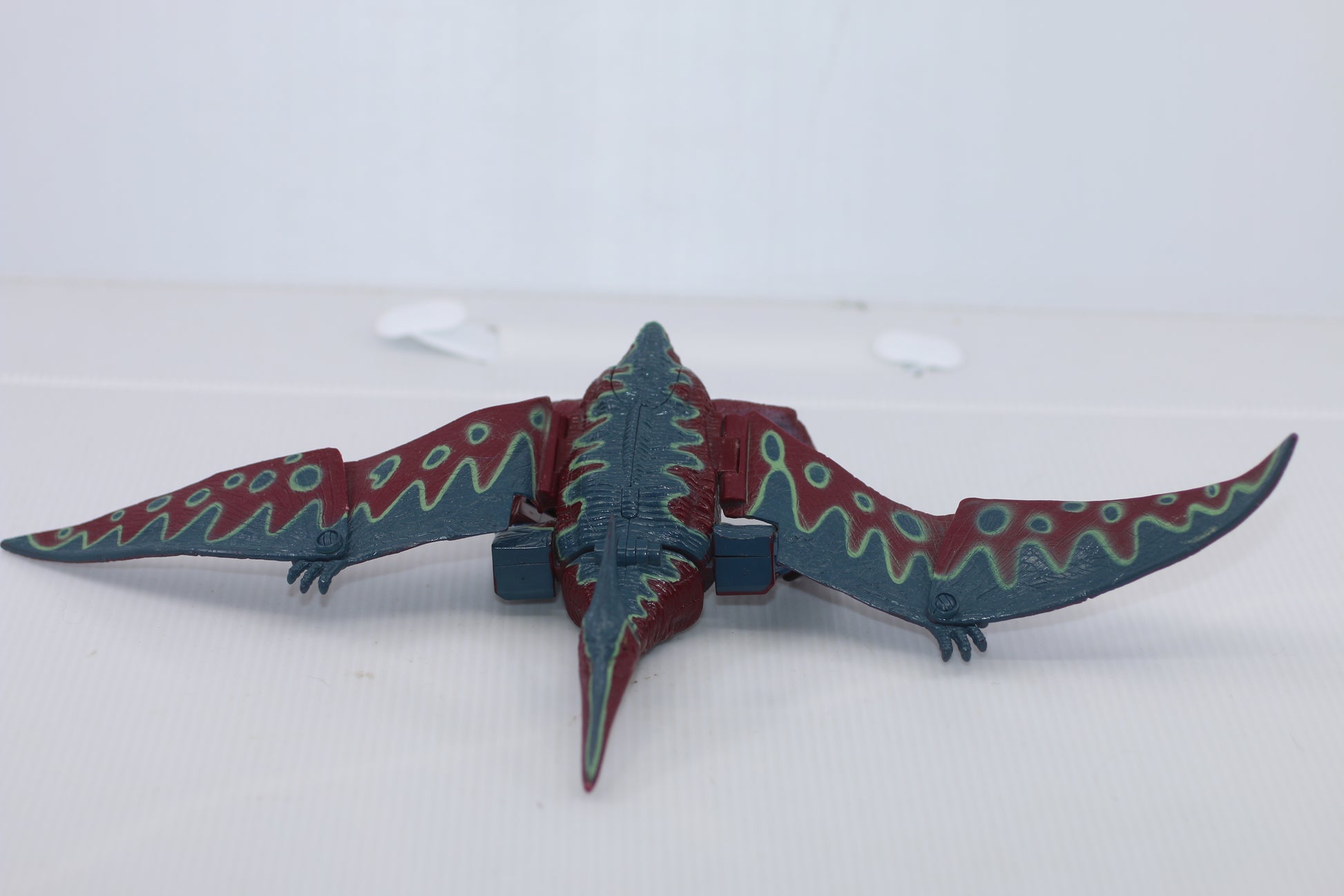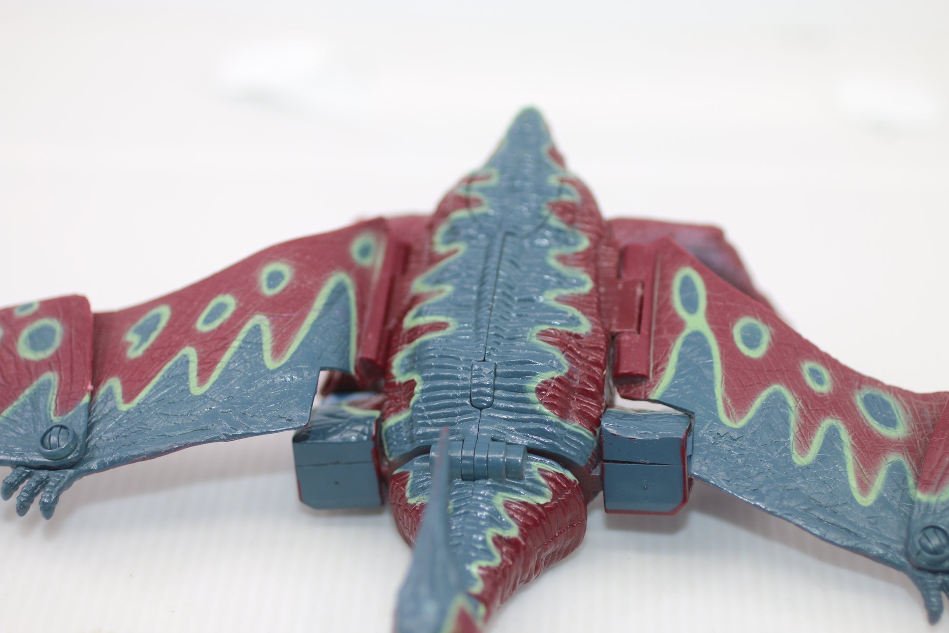 Vintage 1990s transforming pterodactyl-style robot figure with fold-out wings and dinosaur mode.