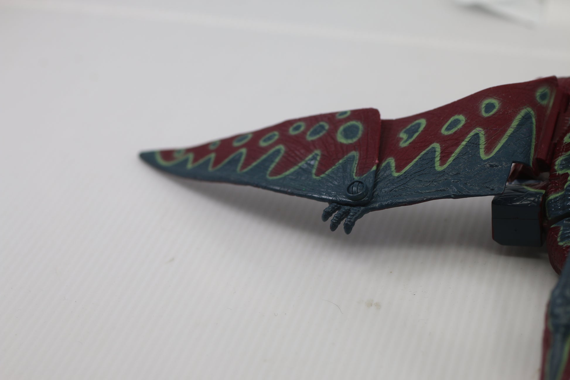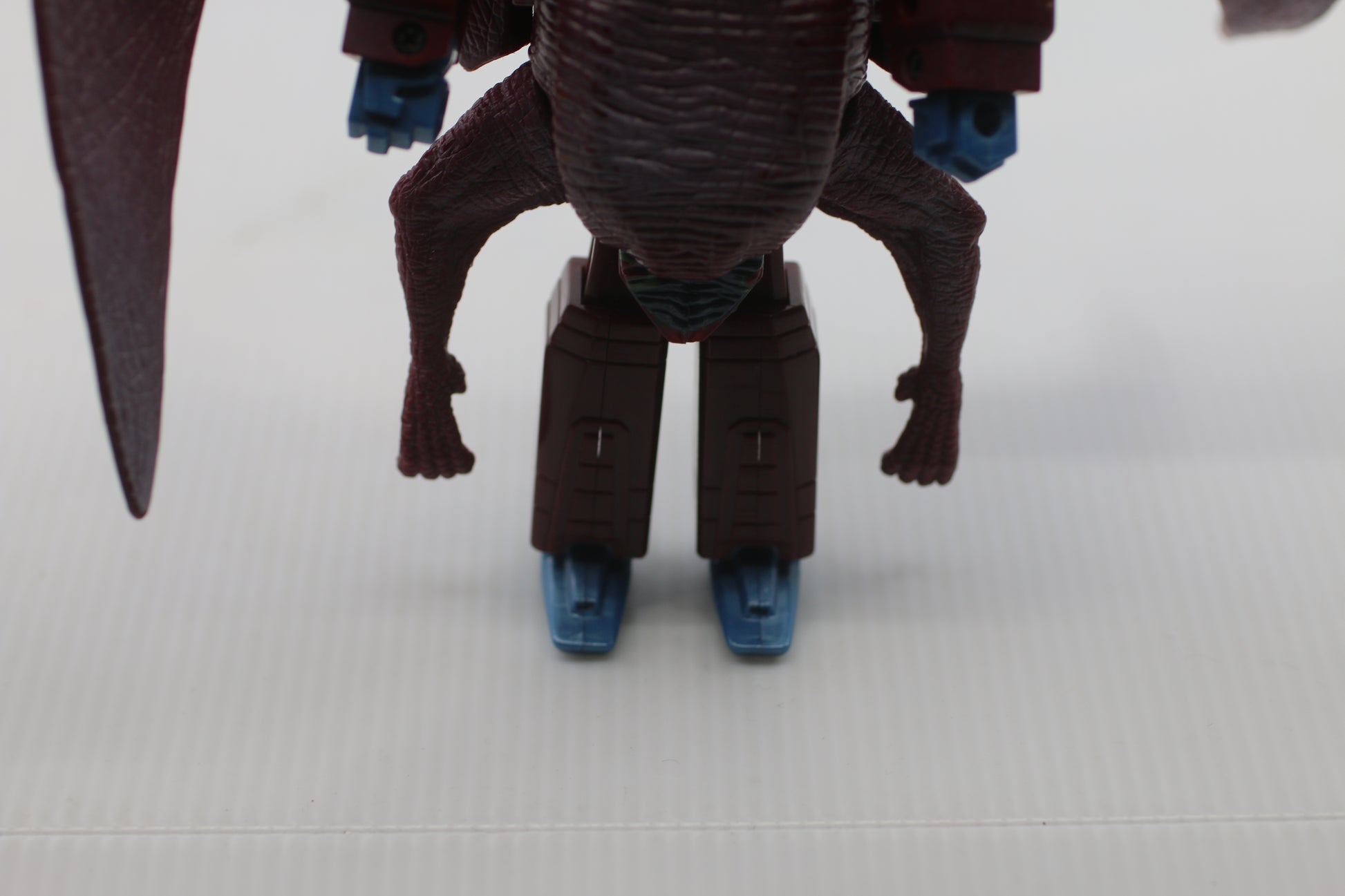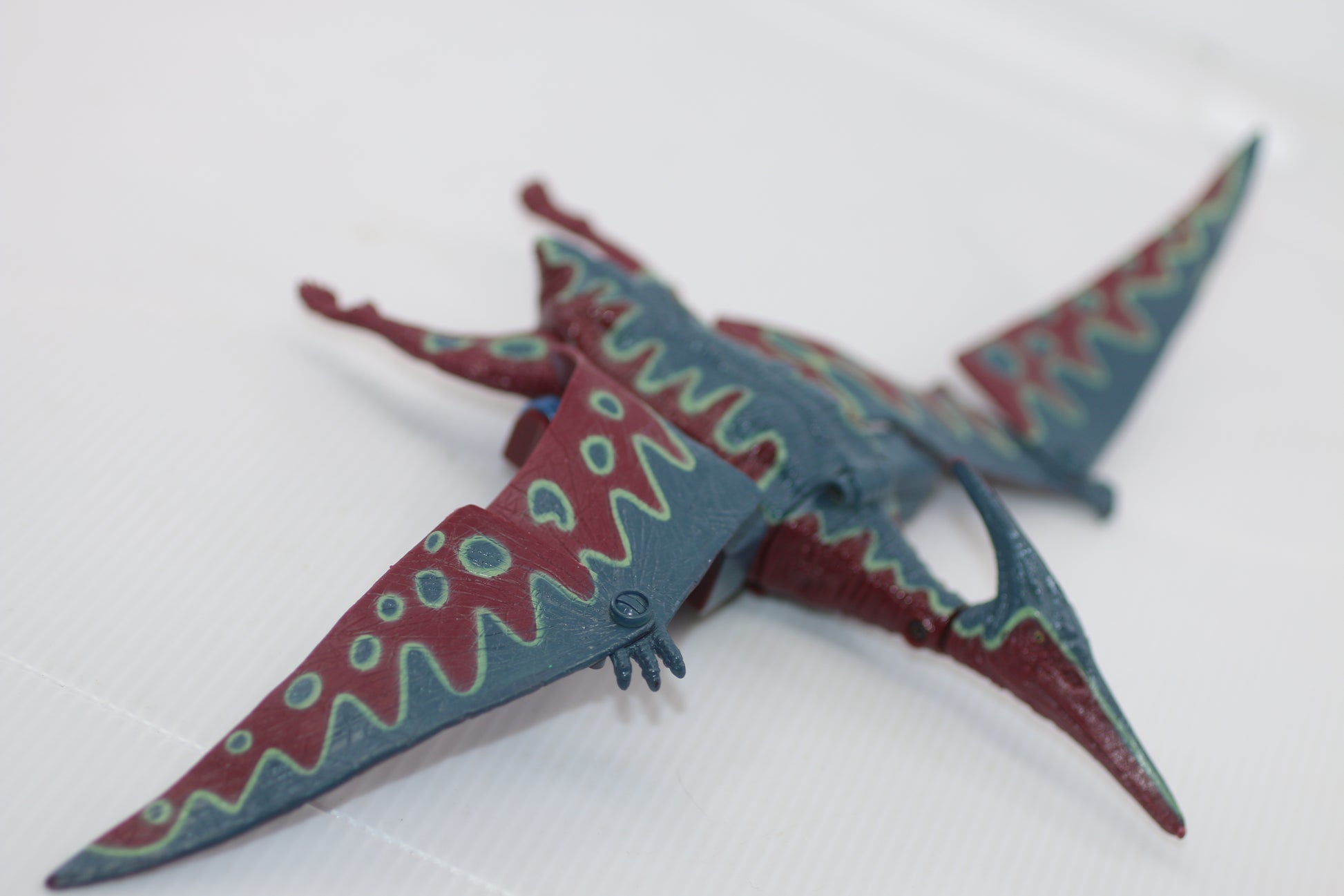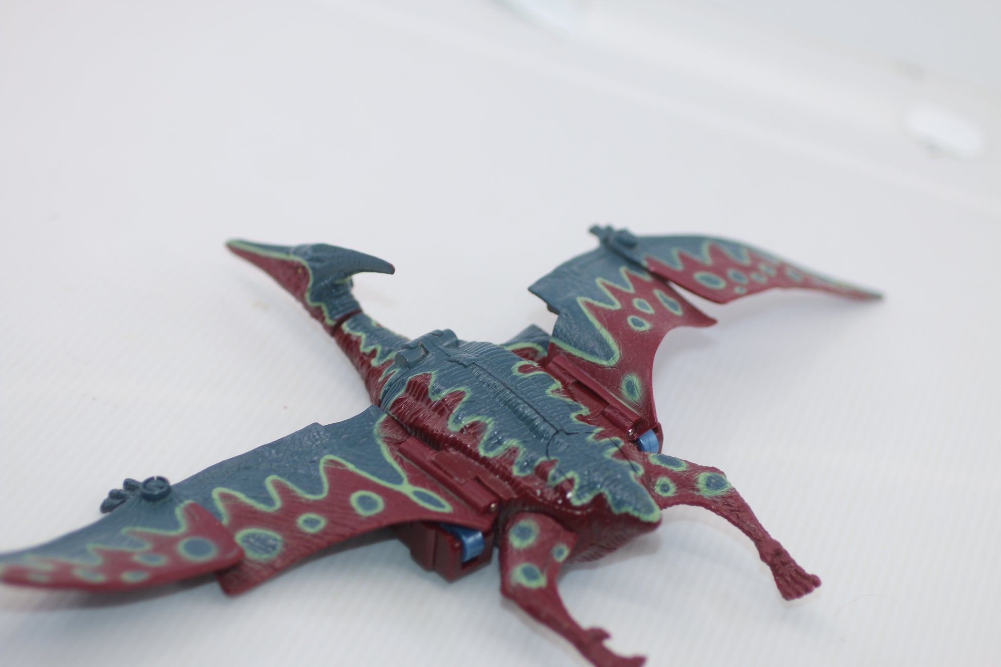 Vintage 1990s transforming pterodactyl-style robot figure with fold-out wings and dinosaur mode.