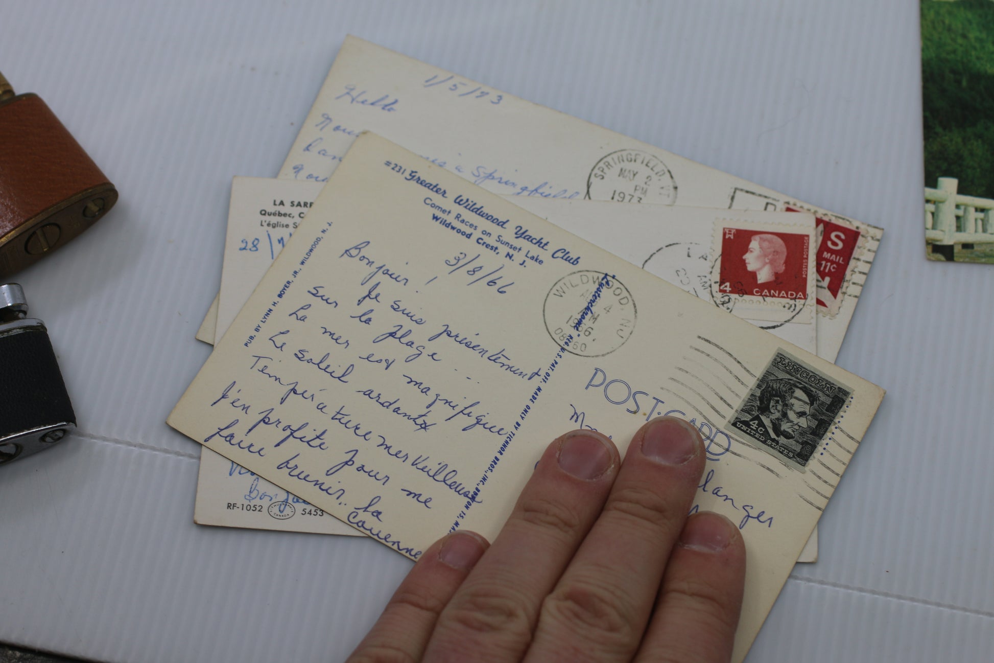 Lot of 4 vintage postcards, dated 1960s–1970s, mailed and handwritten.