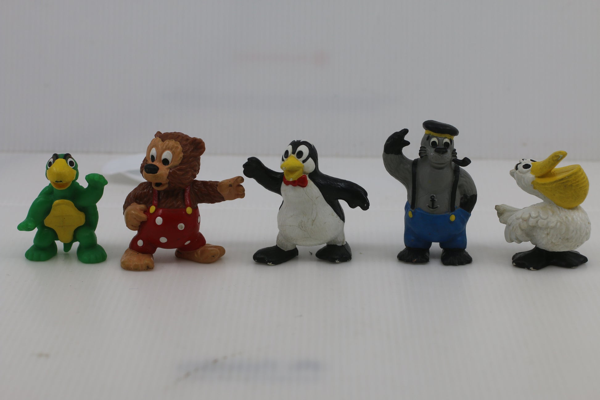 Rare and hard-to-find complete set of 5 Petzi figures, produced by Bully, based on the classic European comic series Petzi.