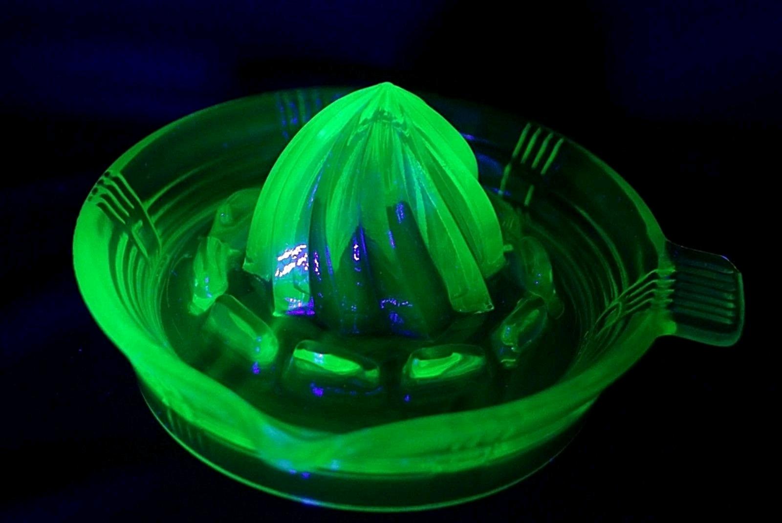Uranium Glass Depression Glass Green Citrus Reamer Juicer 6" UV Glows Green VTG