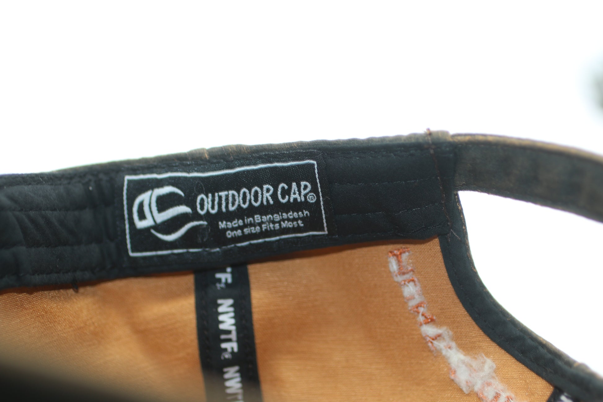 The original NWTF Wild Turkey Federation hang tag is still attached, confirming authenticity. Interior label indicates Outdoor Cap®, made in Bangladesh.
