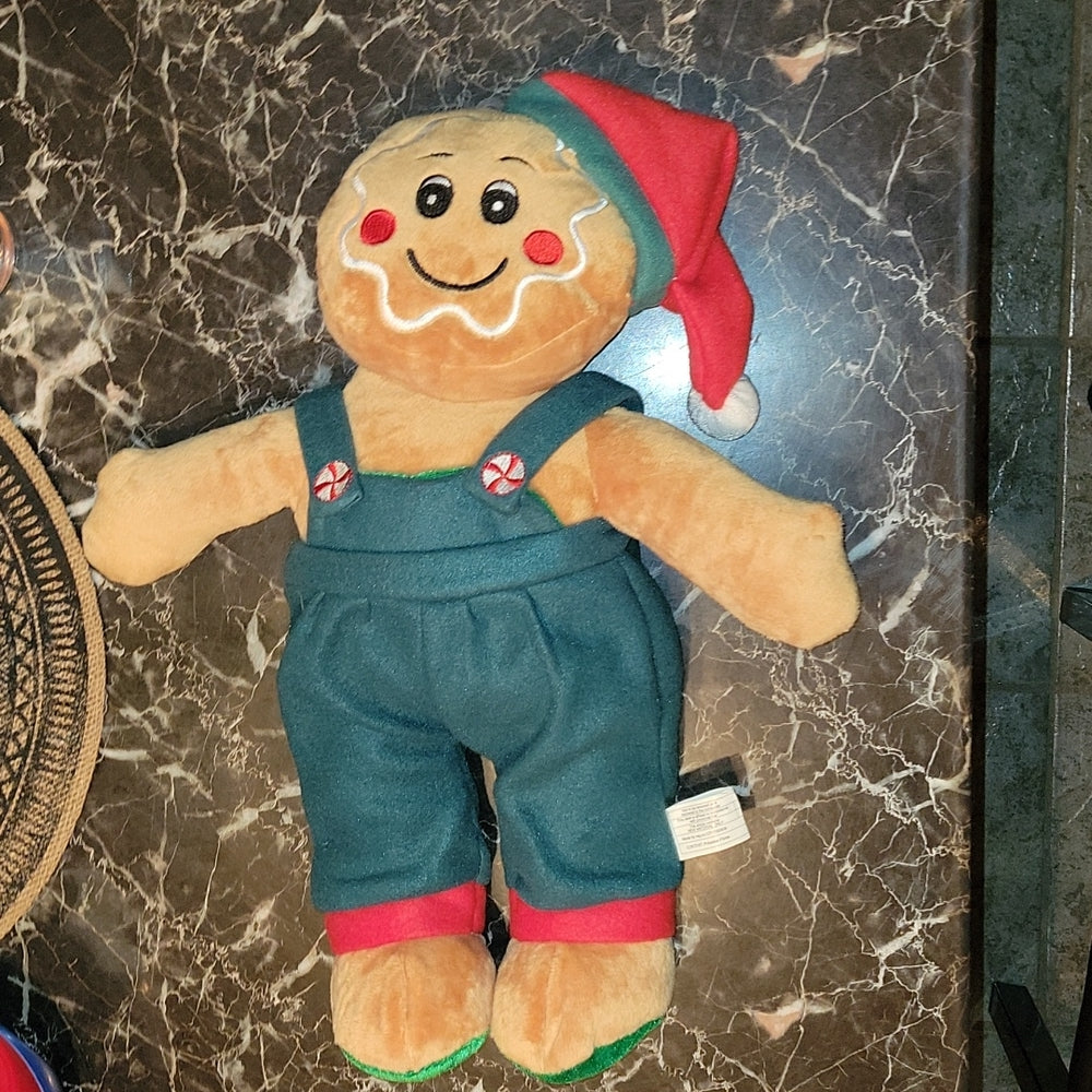 18" Gingerbread Doll Plush Overalls Green Clothes Santa Hat Christmas Decoration