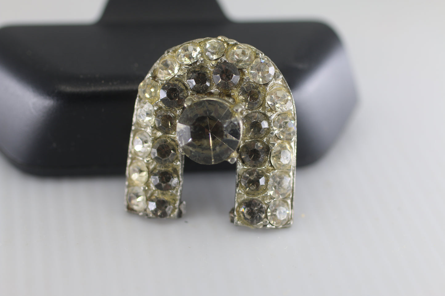 Art Nouveau brooch in faux Diamond, Door Gate U Form Rhinestone