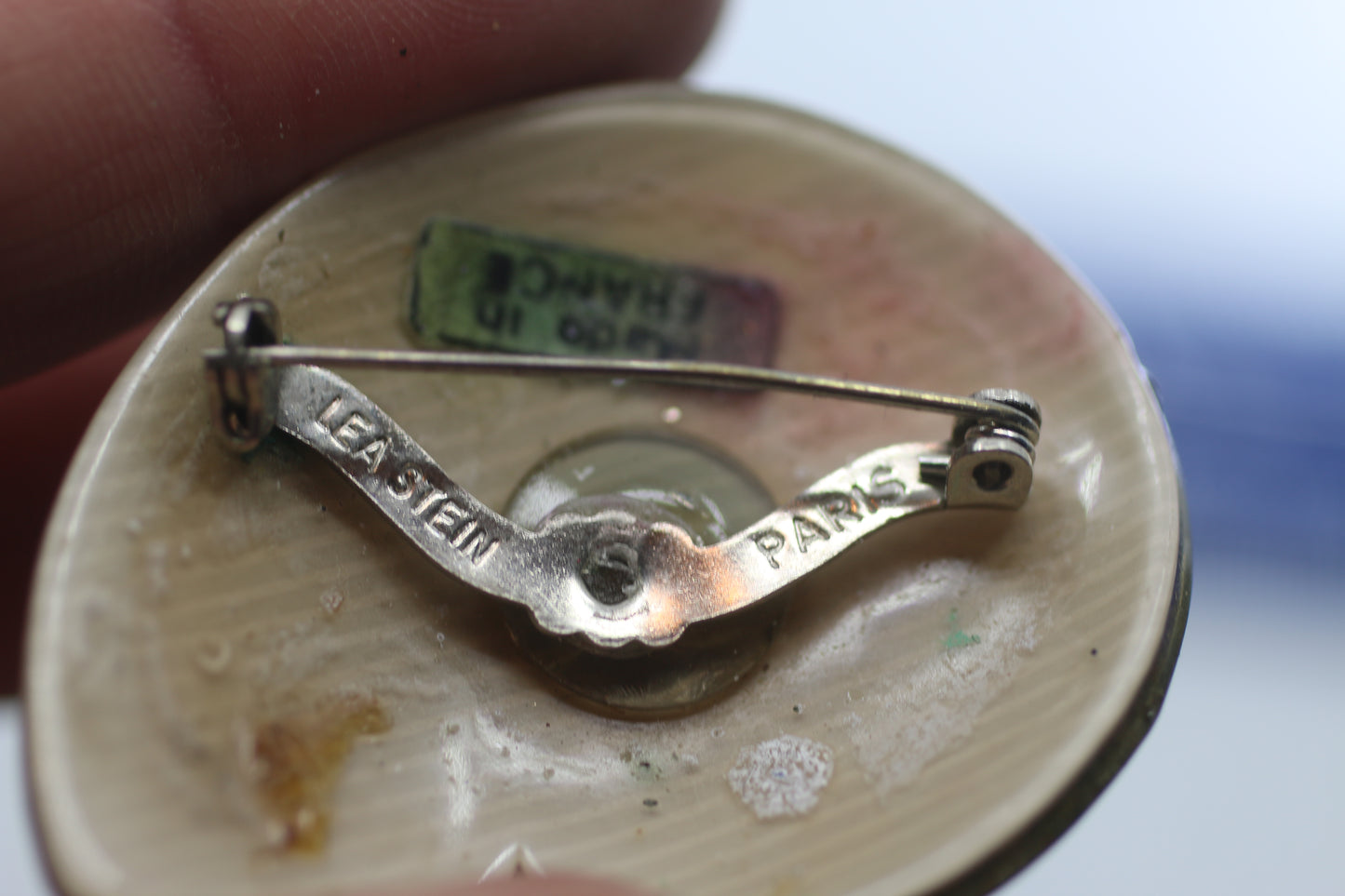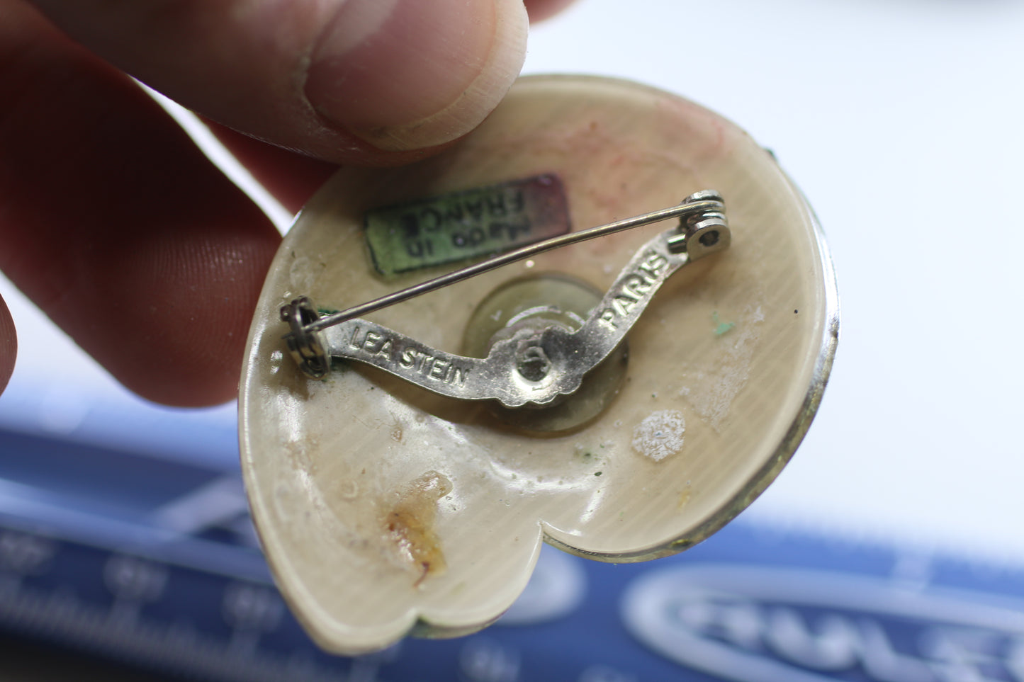 BROOCH LEA STEIN METAL ACETATE VINTAGE 1970 Made in France