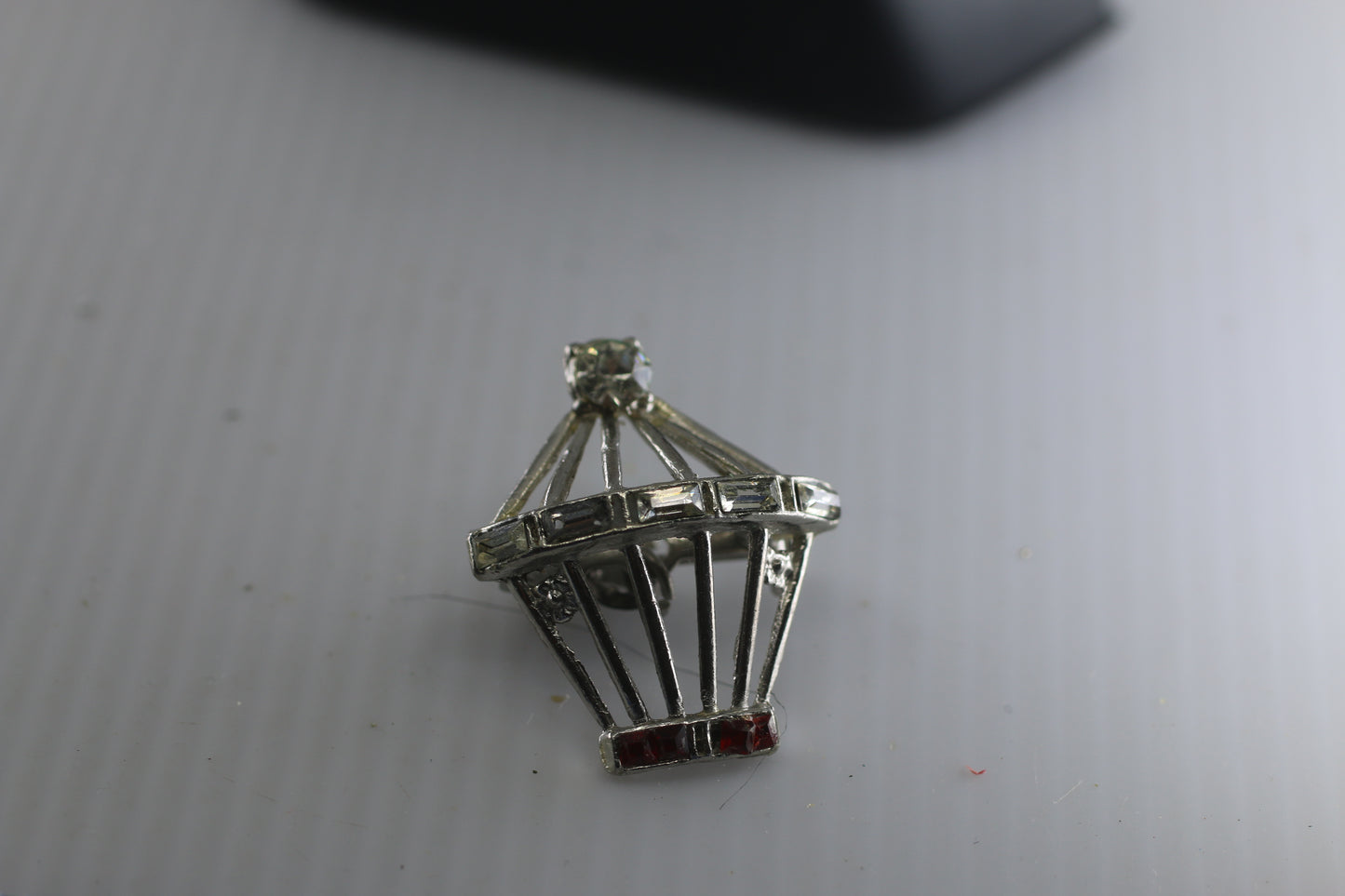 Brooch women's accessory 90s jewelry Silver rhinestone Bird cage