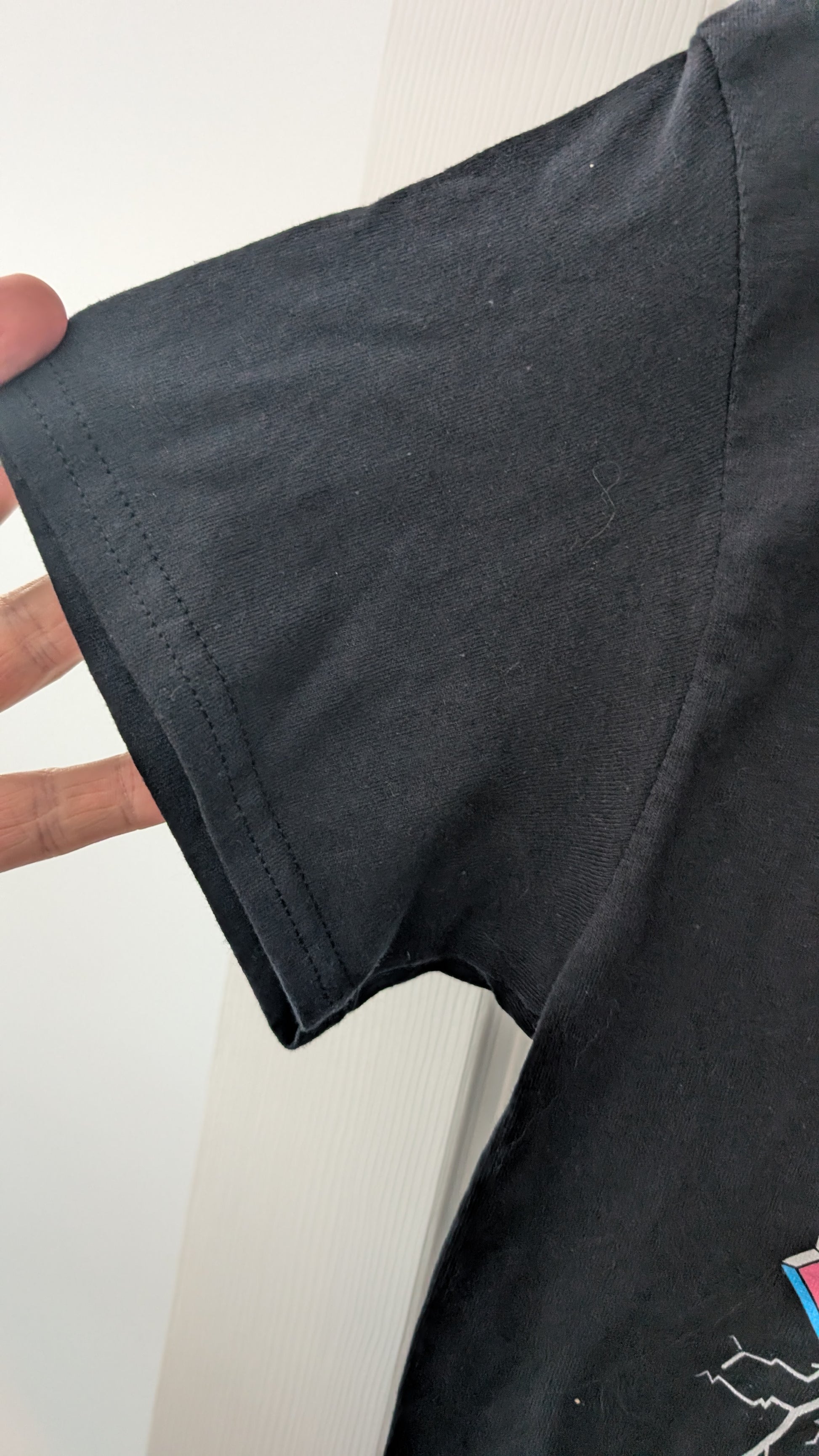 Good pre-owned condition. Light signs of wear consistent with normal use (minor lint and light fading possible). No holes, no stains, graphic remains vibrant. See photos for exact condition.
