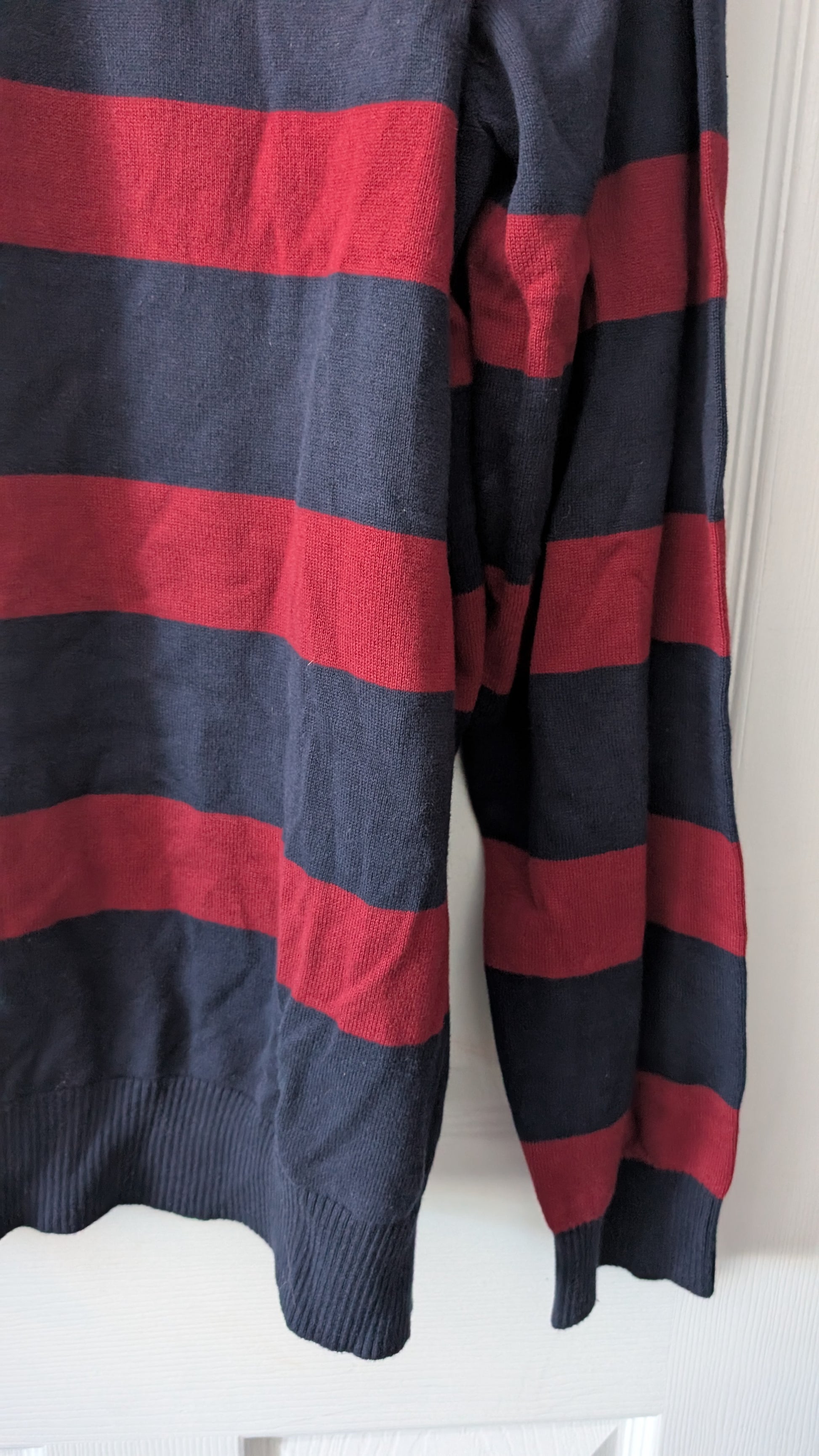 Tommy Hilfiger Men’s V-Neck Sweater Red Navy Stripe 100% Cotton Size XXL