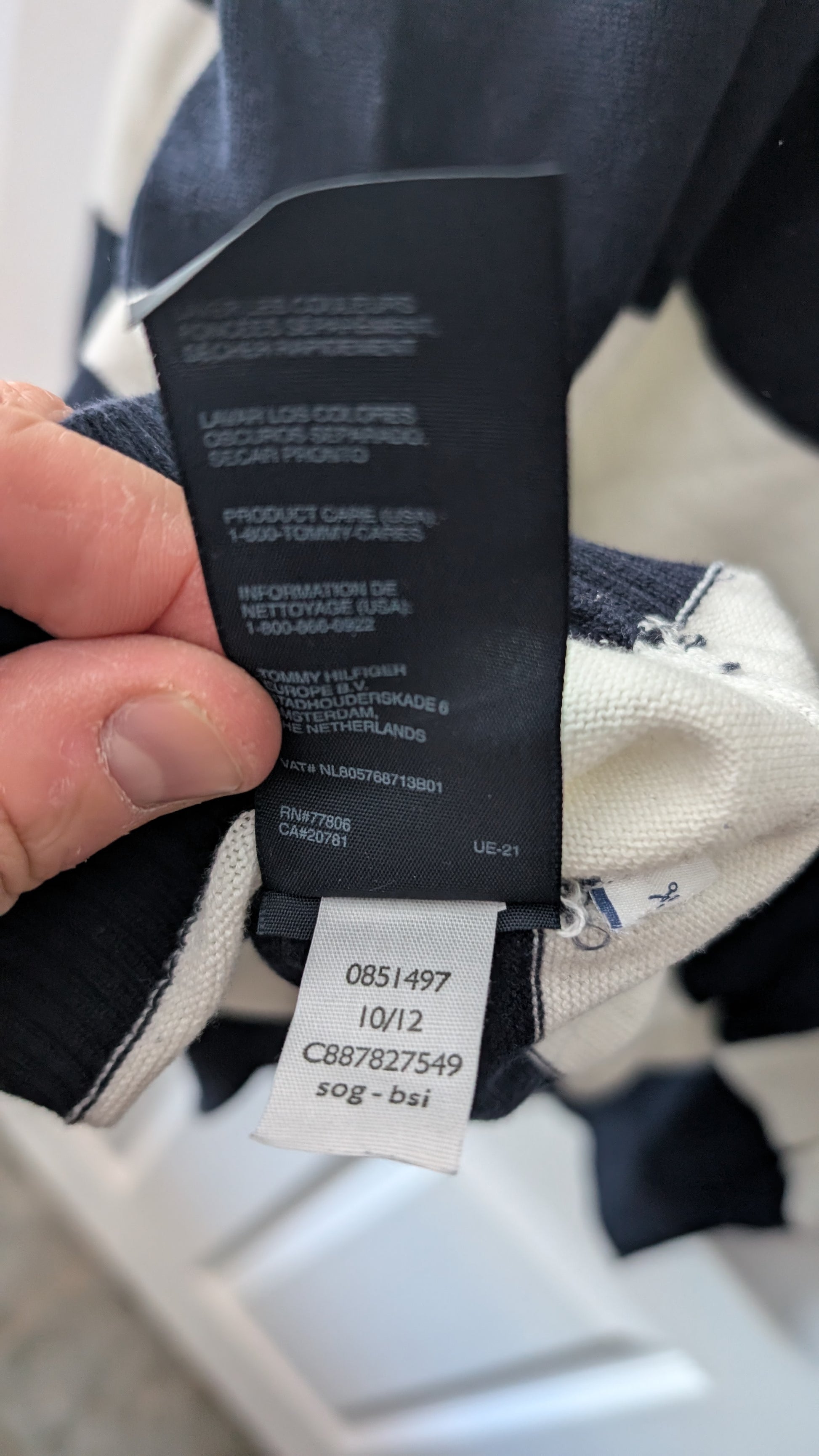 Tommy Hilfiger Men’s V-Neck Striped Sweater Navy white XXL Cotton Knit Pullover