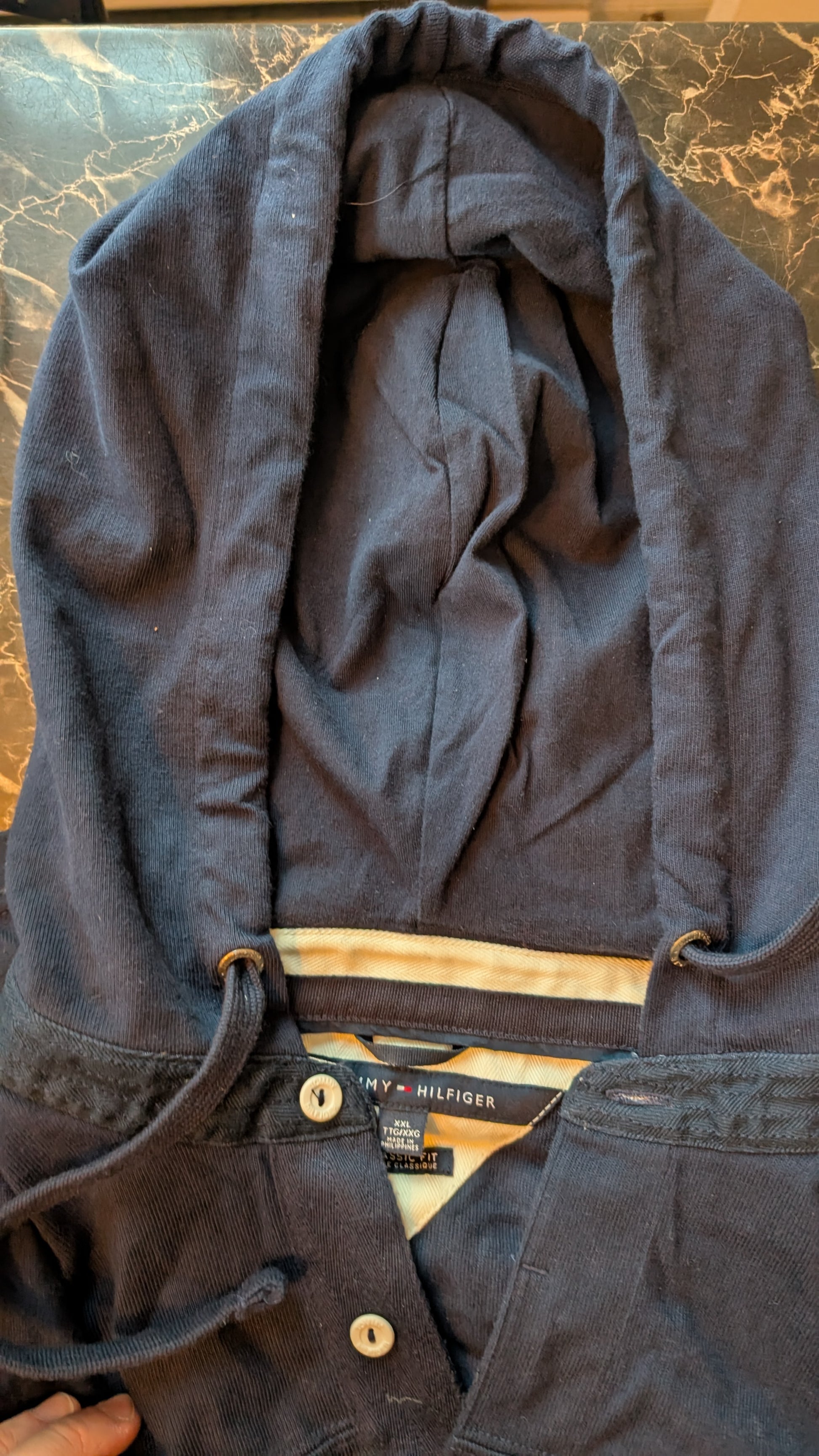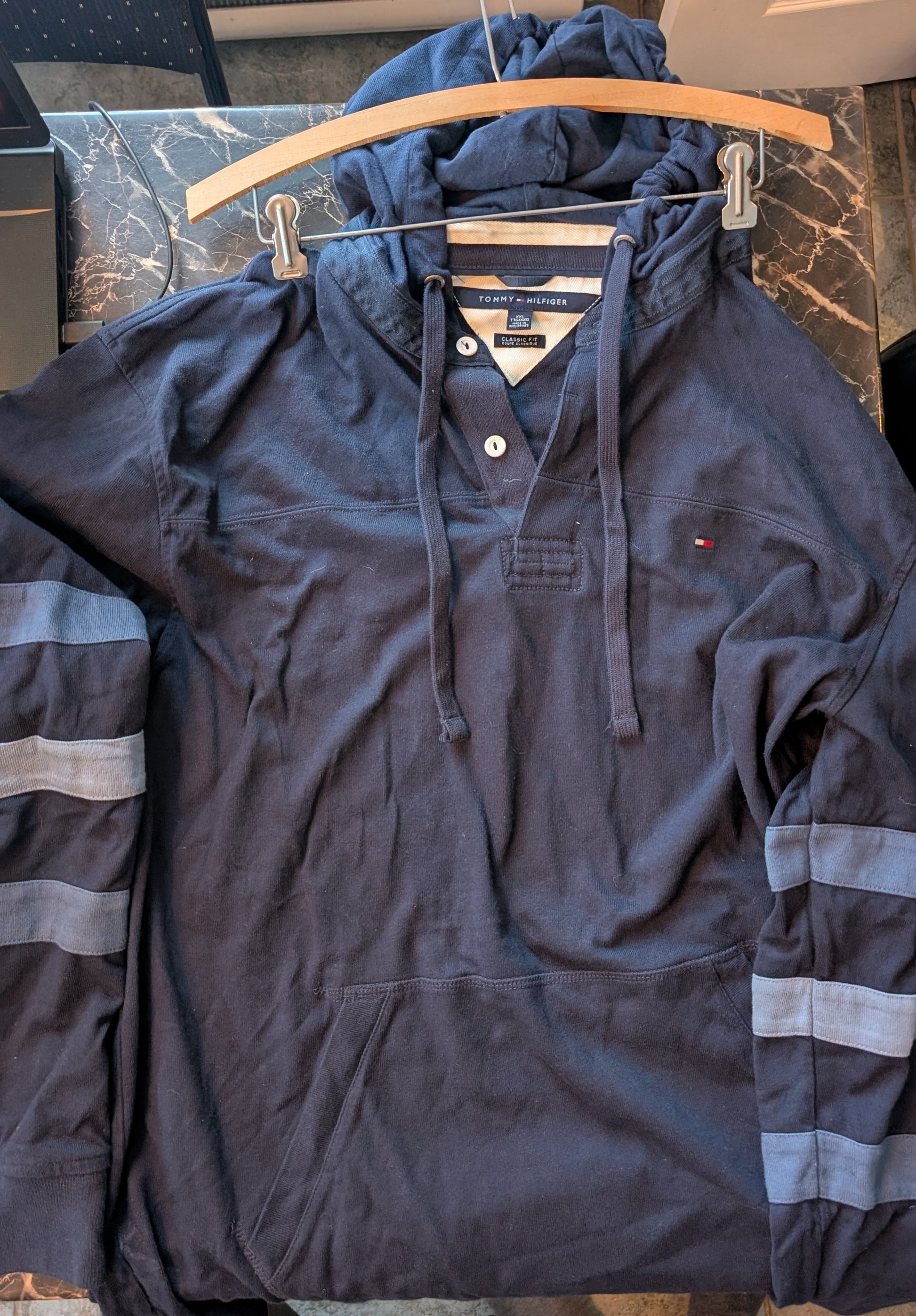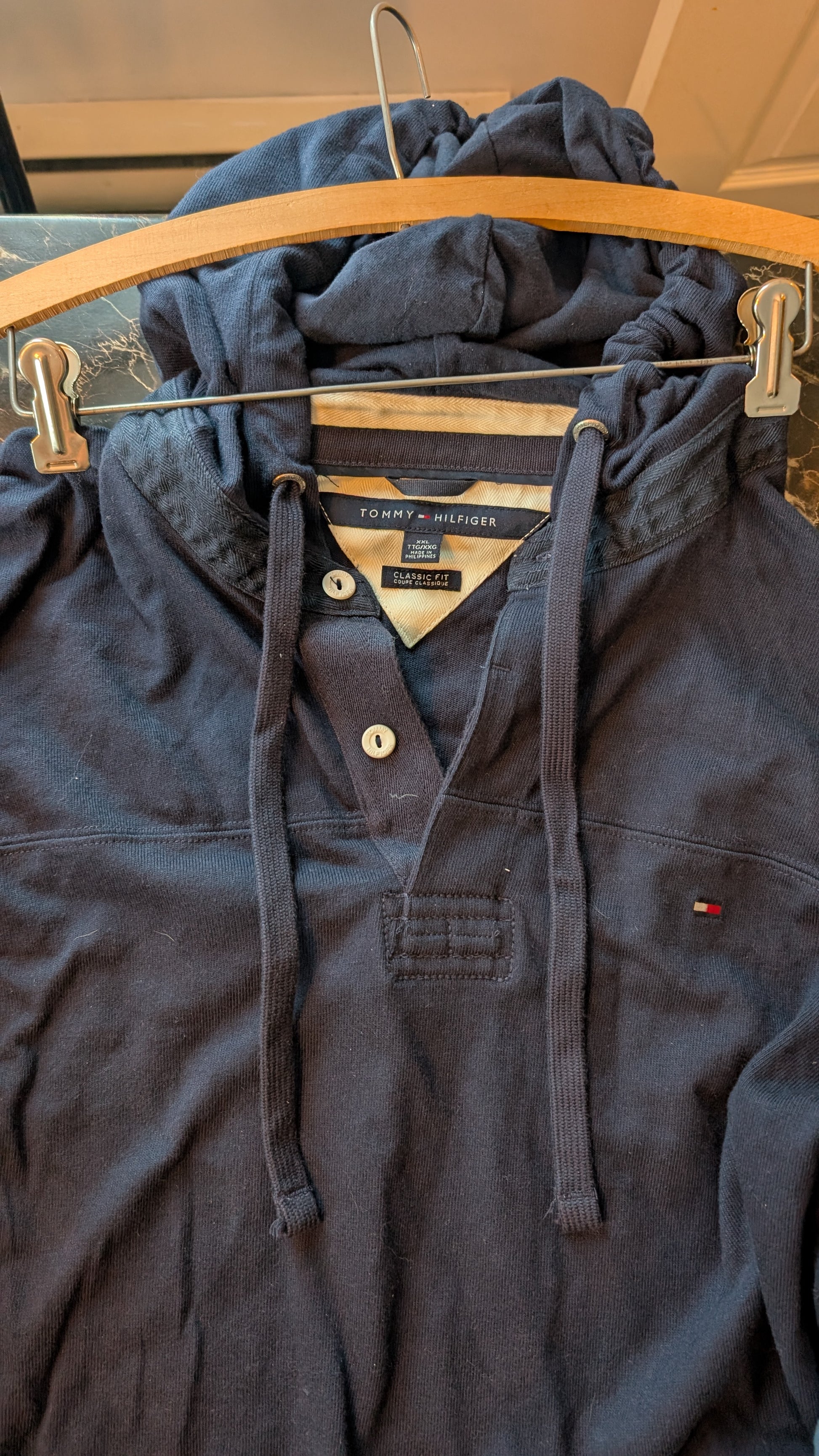 Tommy Hilfiger Classic Fit Hoodie Henley Pullover Navy Blue XXL