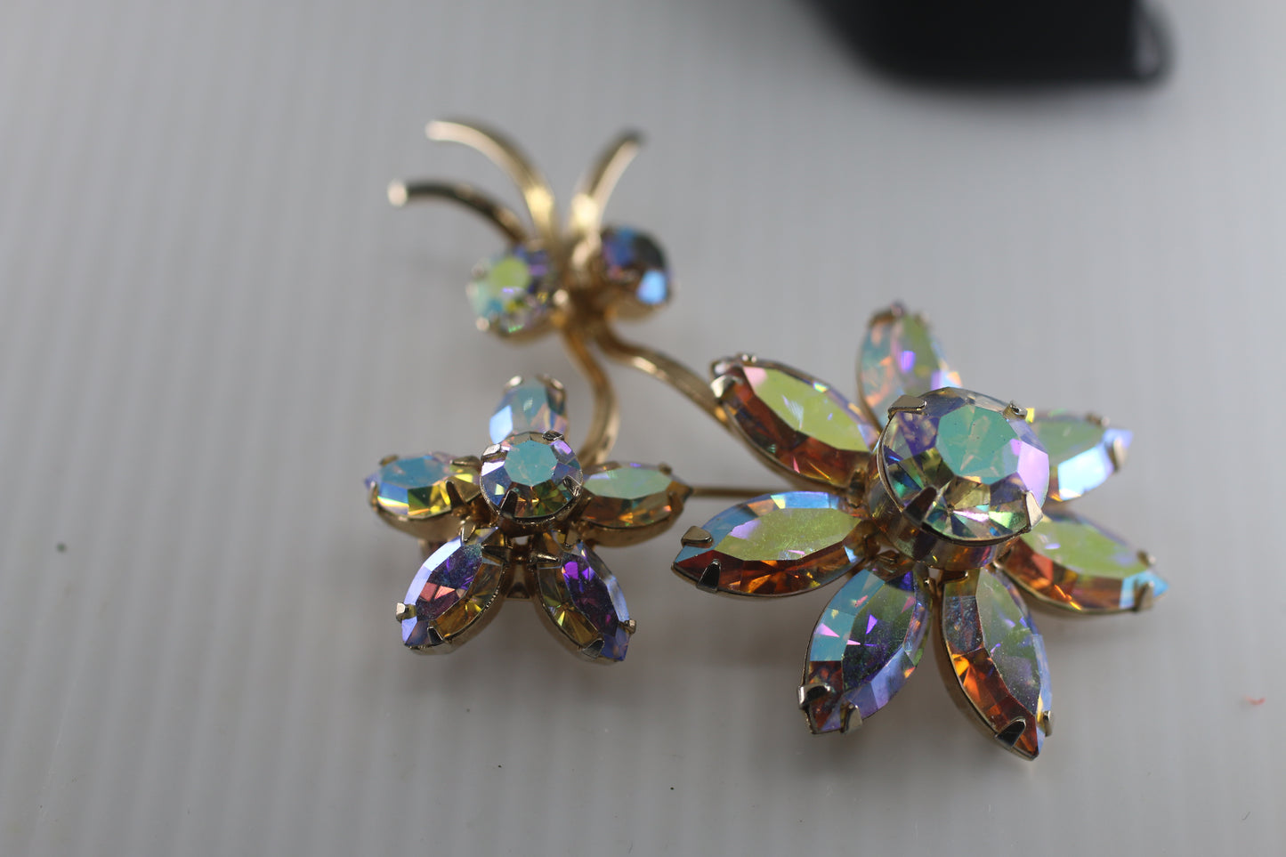 Rare vintage Flower diamond Rhinestone tone Brooch