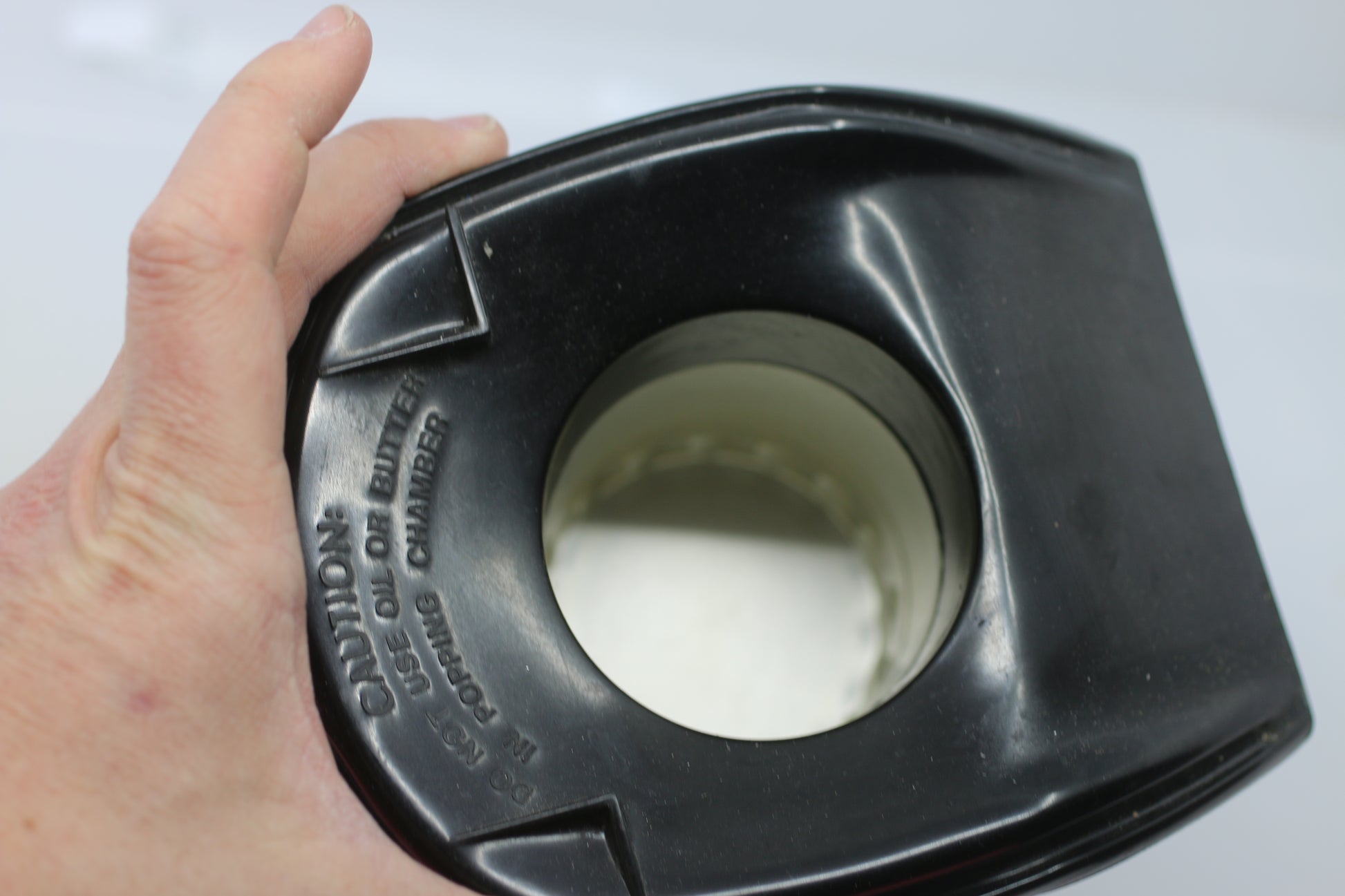The small metal butter-melting tray on top is missing. Butter will need to be melted separately and added manually to the popcorn.