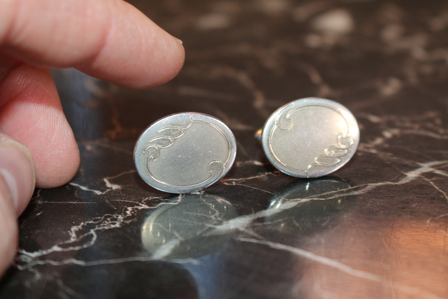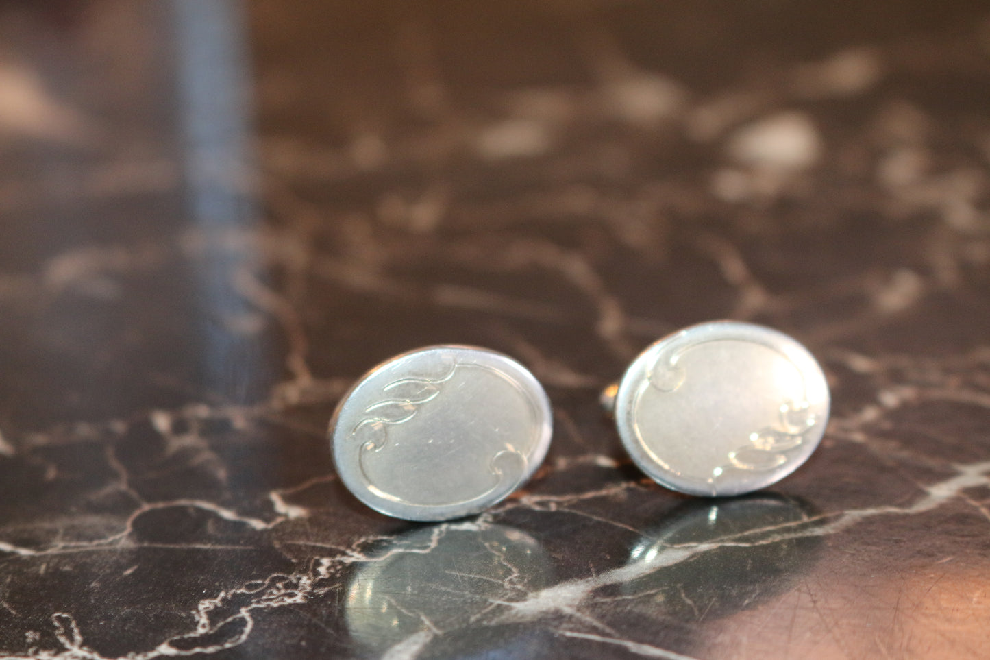 Vtg Engraved Silver Cufflinks. Gift For Dad Groomsmen, Wedding
