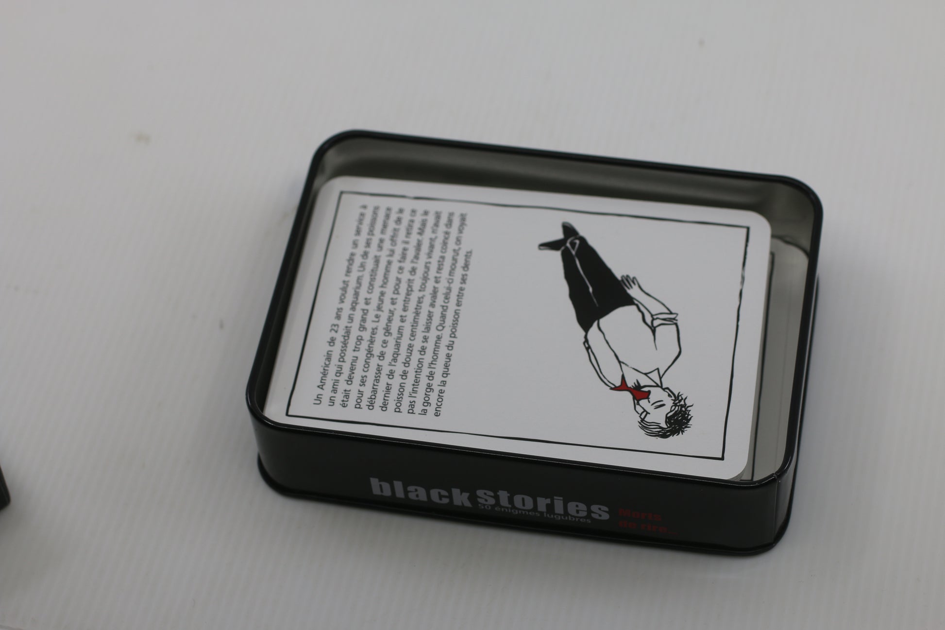 Black Stories – Morts de rire – Jeu de cartes énigmes – Édition française – Boîte métal