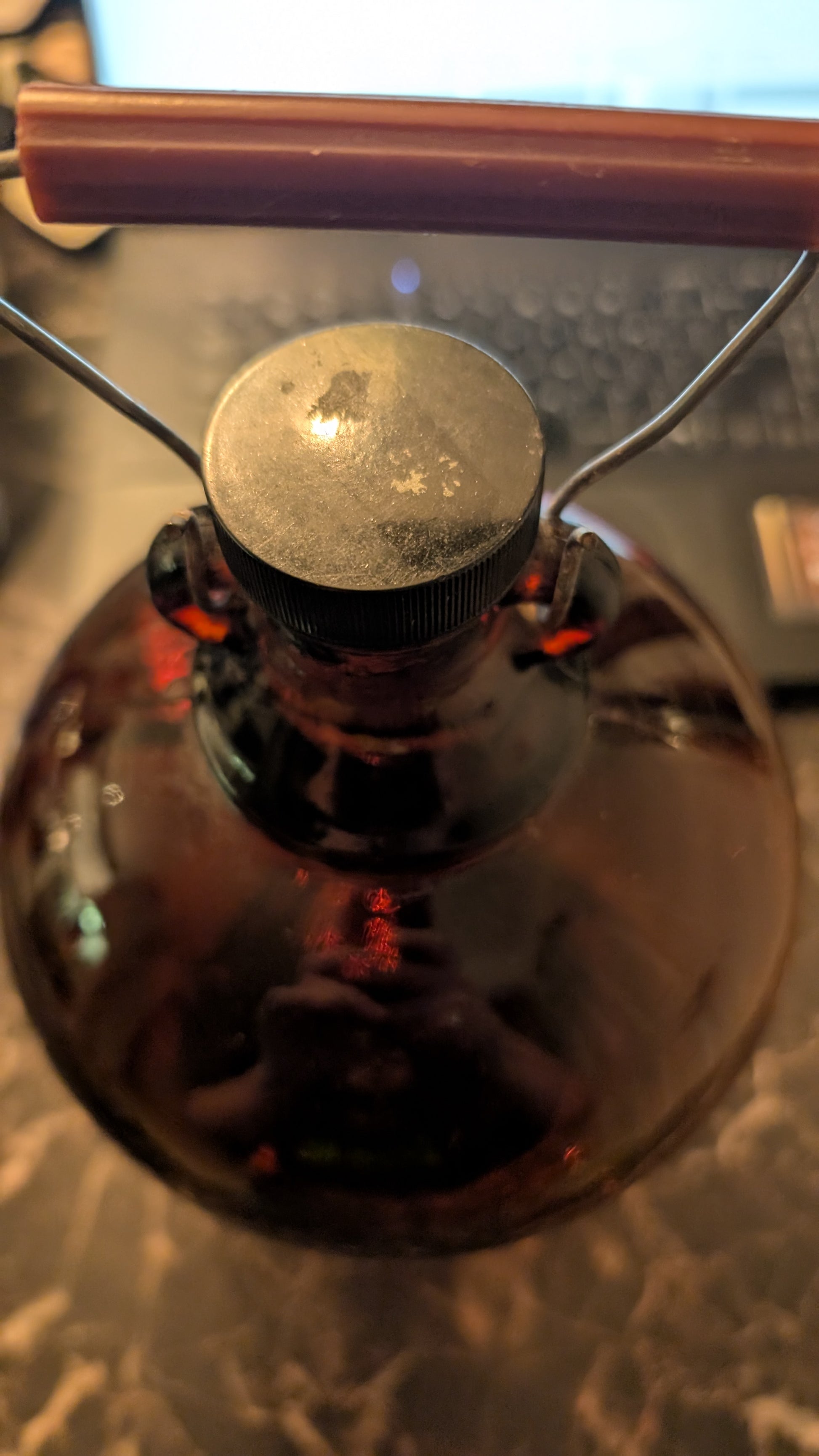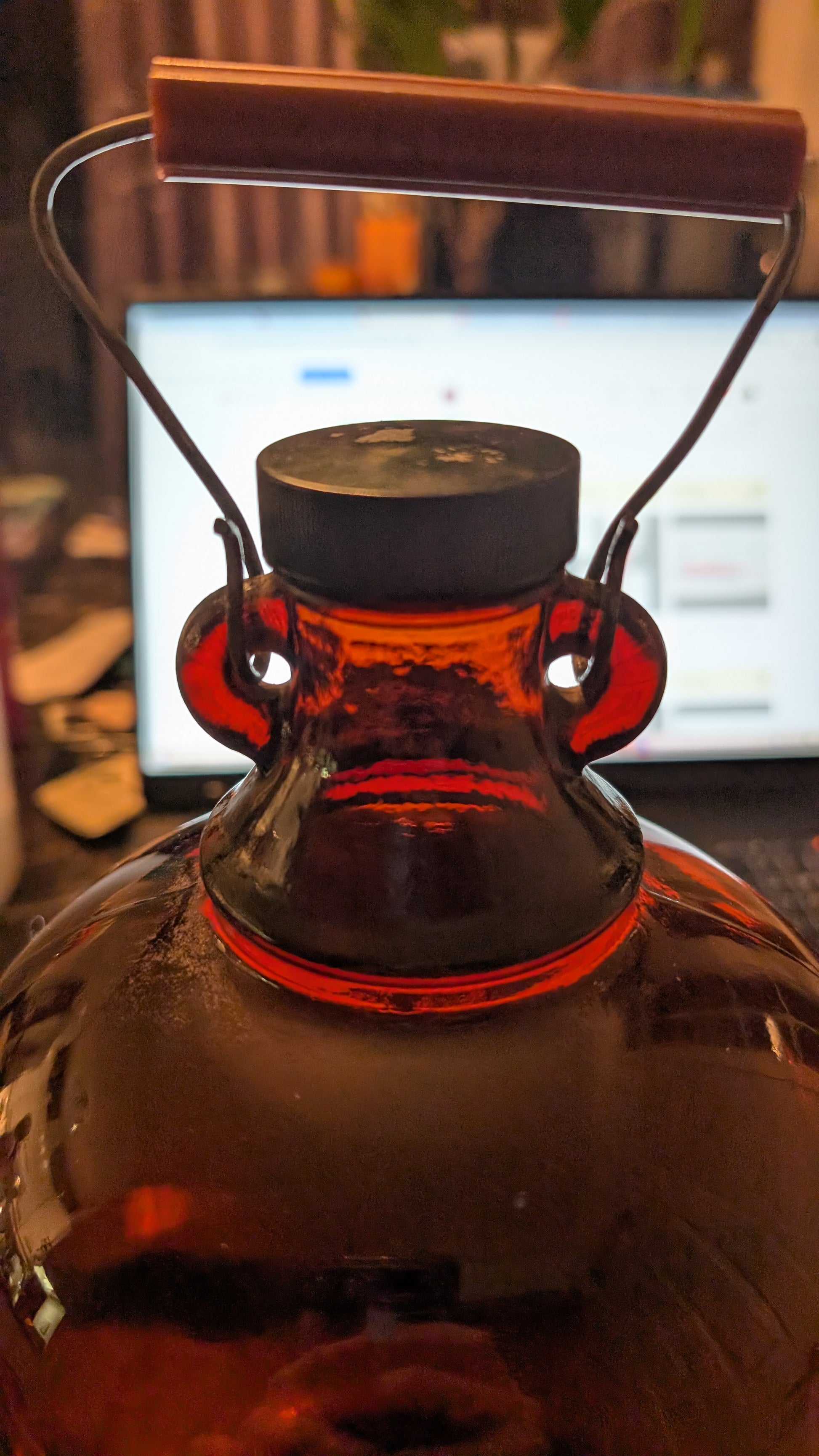 Vintage Amber Glass Jug 160 oz – Made in Canada – Wire Handle Brown Bottle
