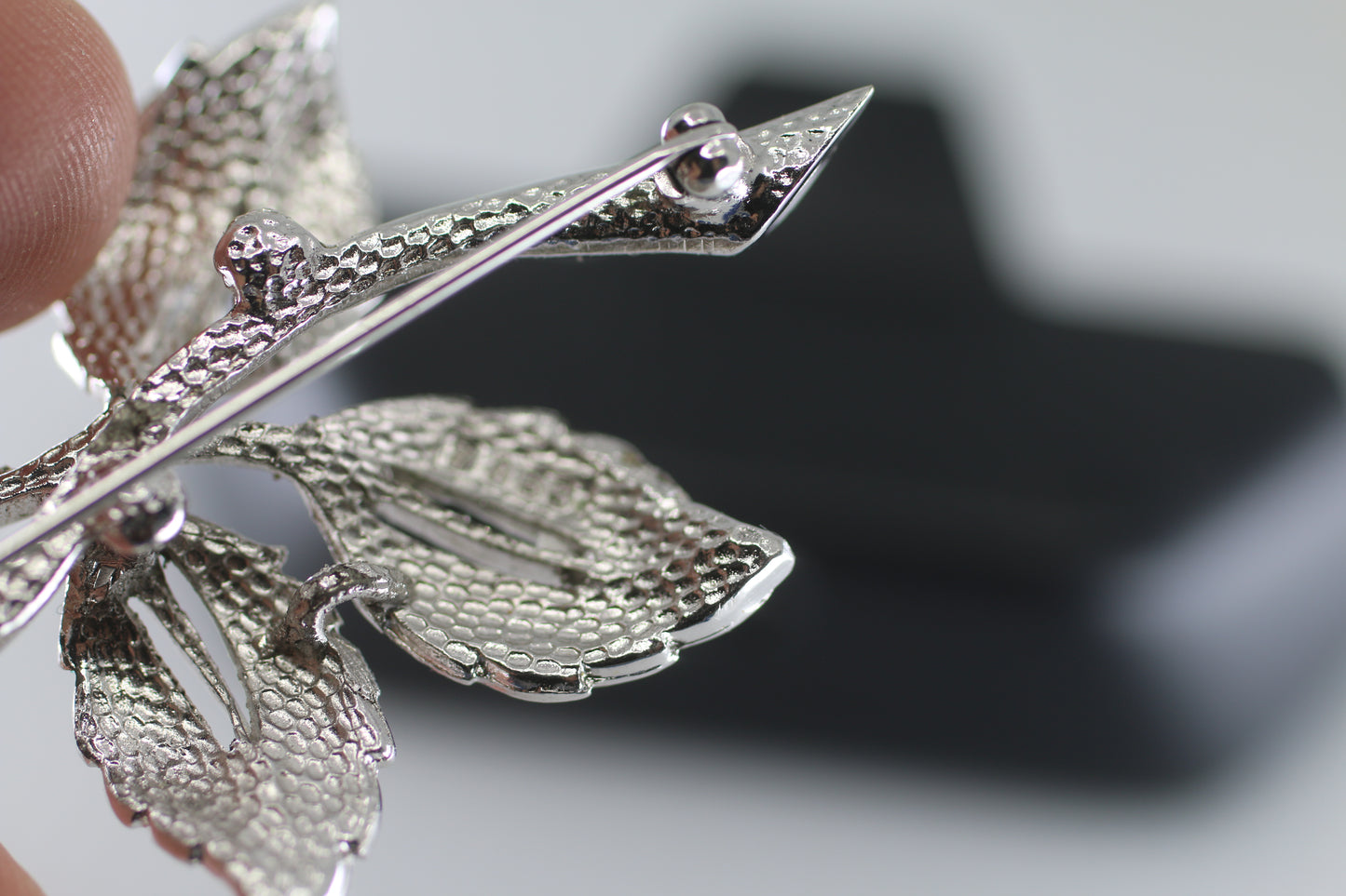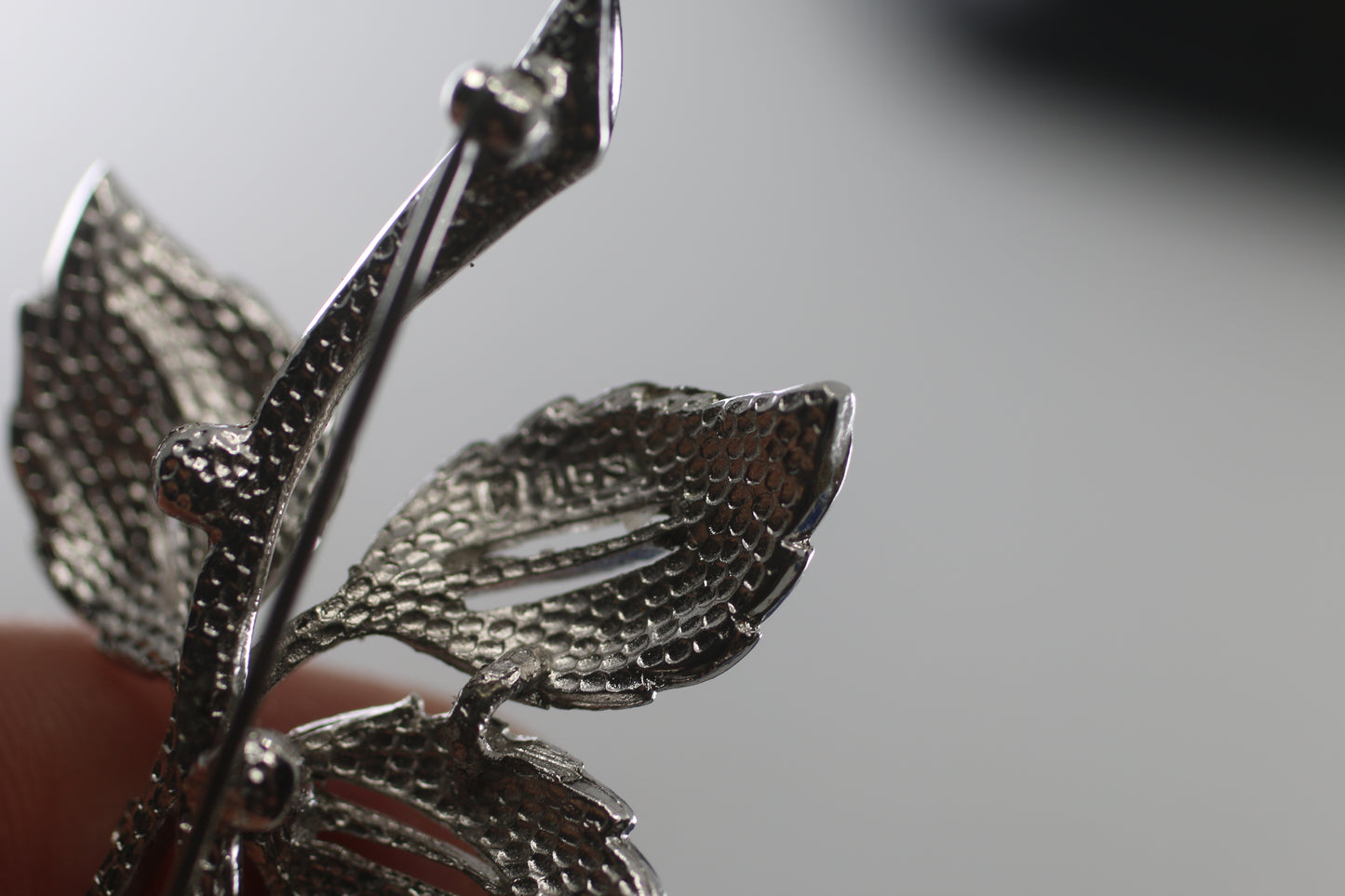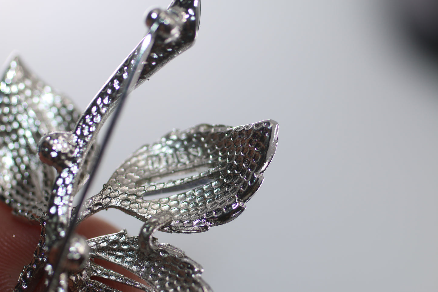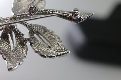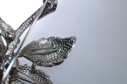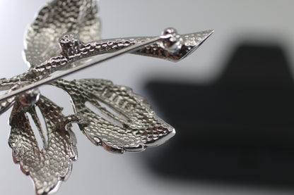 intage Flower Brooch with Silver numbered Metal Leaves