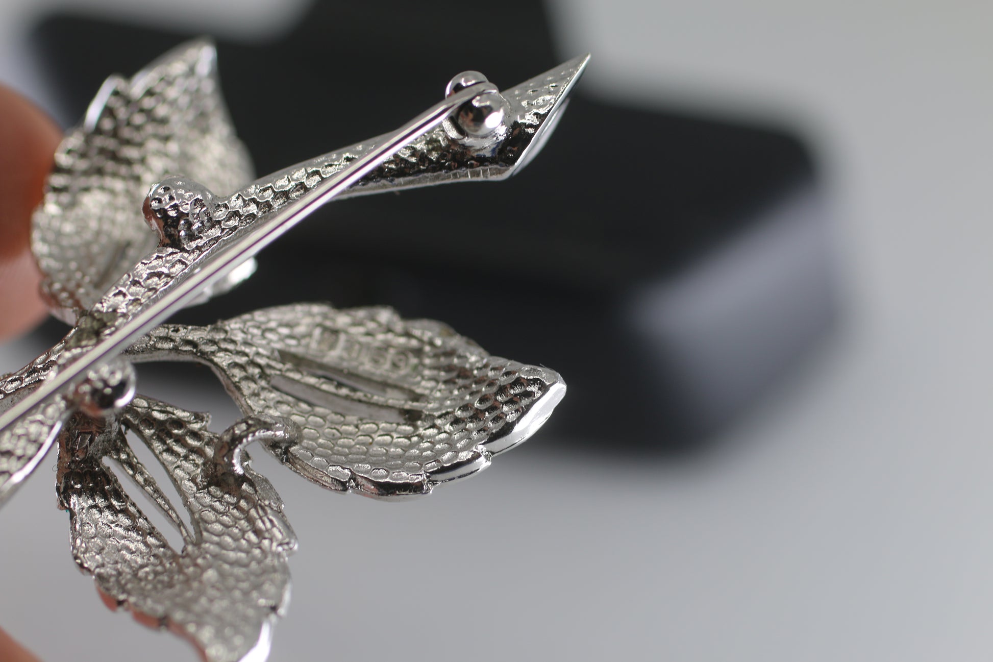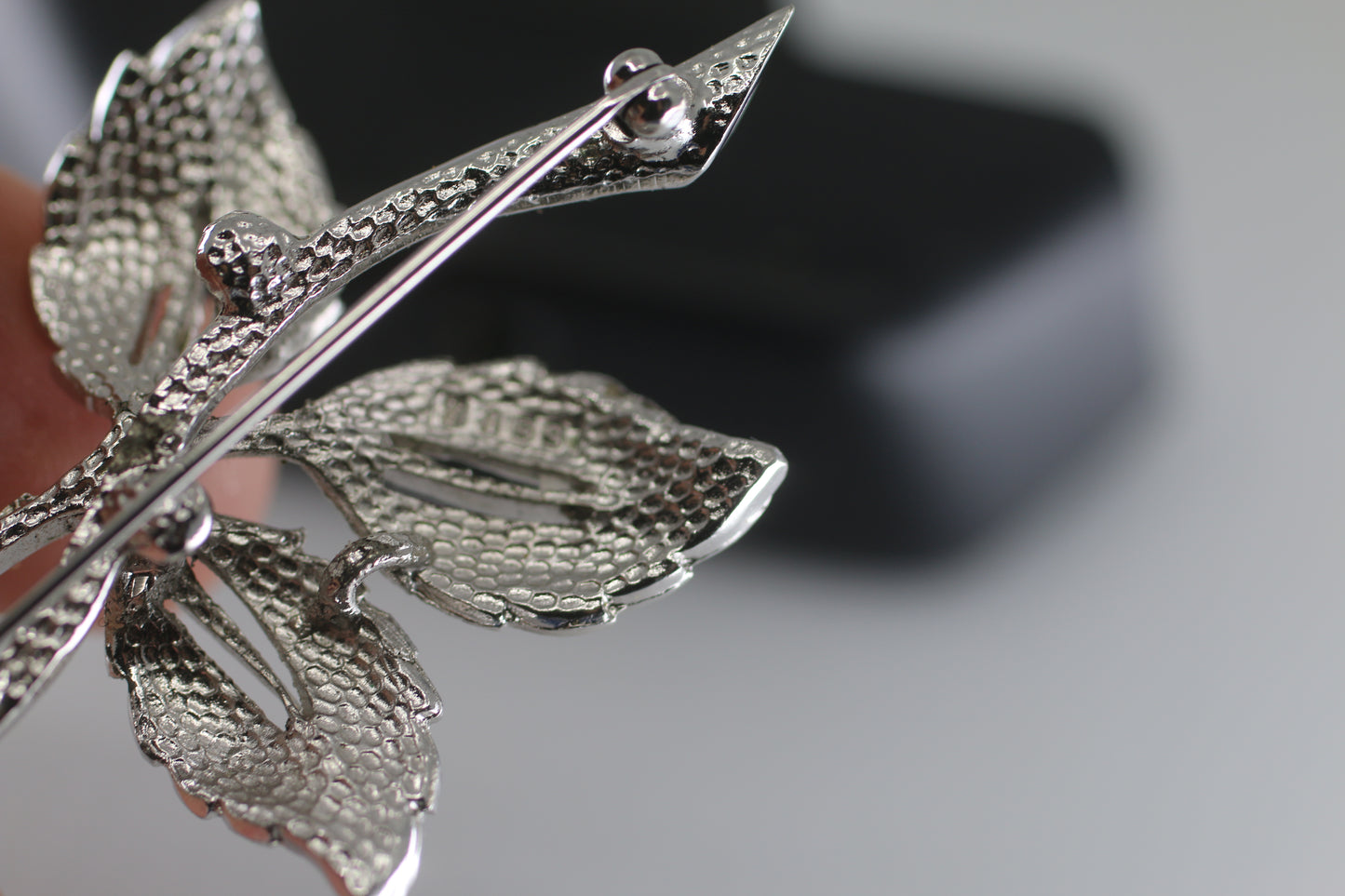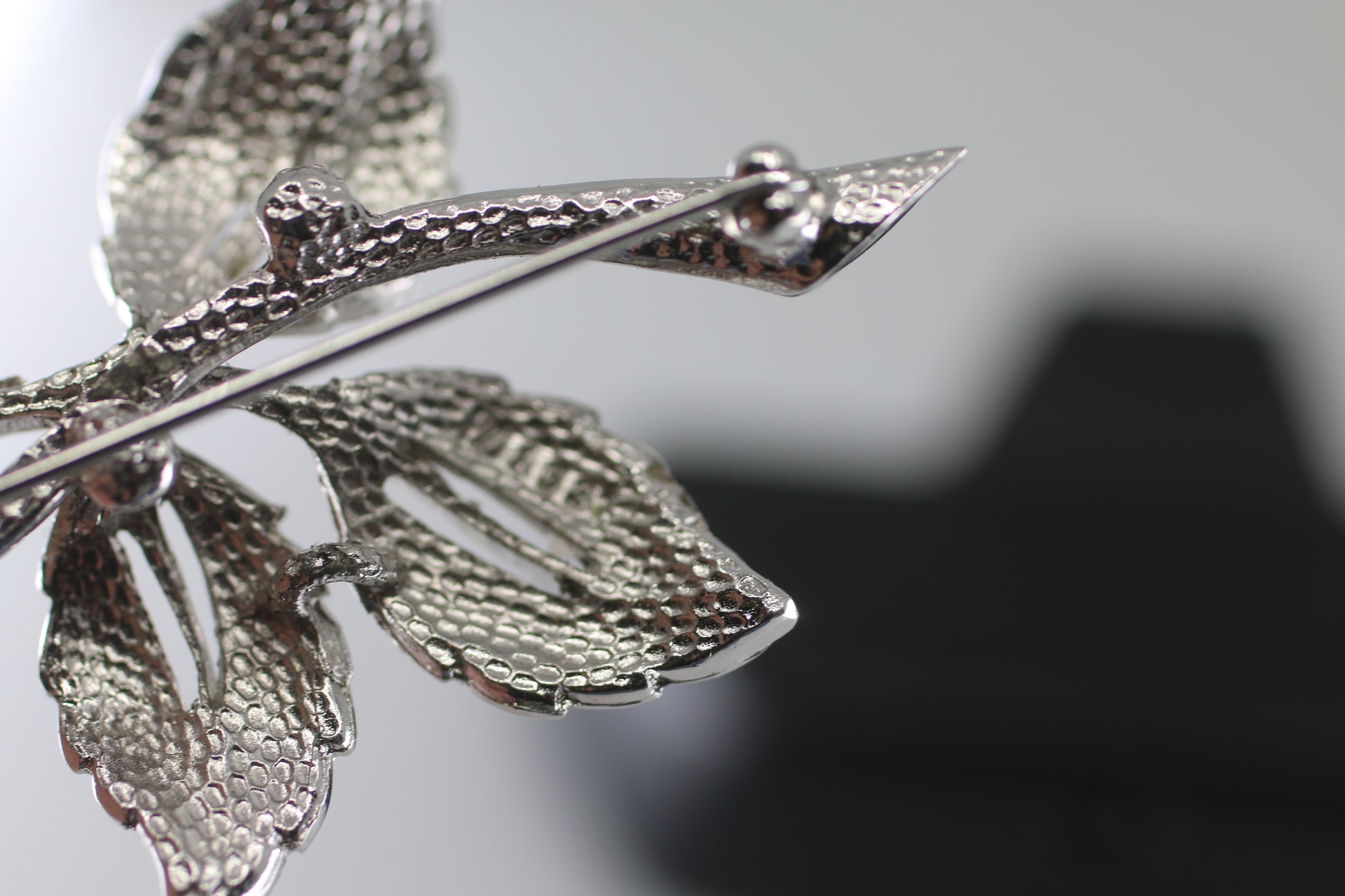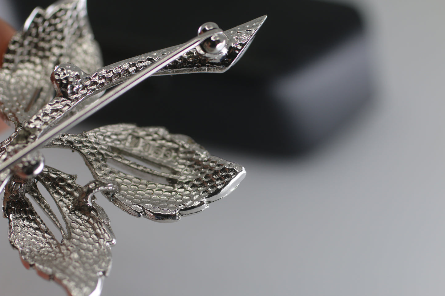 intage Flower Brooch with Silver numbered Metal Leaves