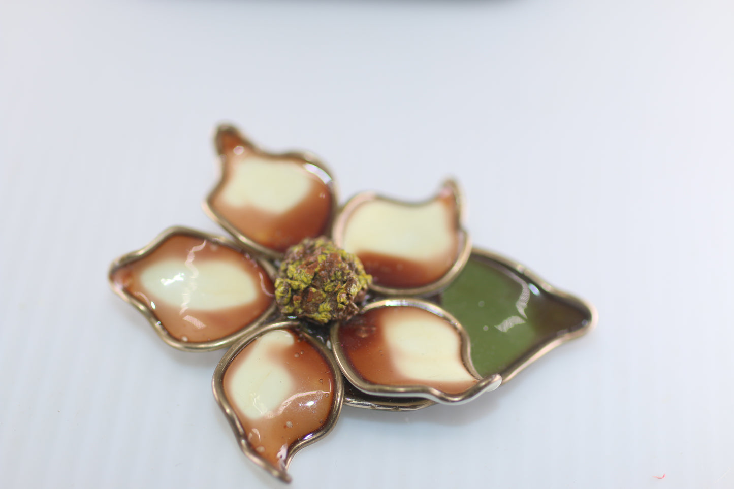 Enamel Dogwood Flower Brooch Made By Cicilia Schneider