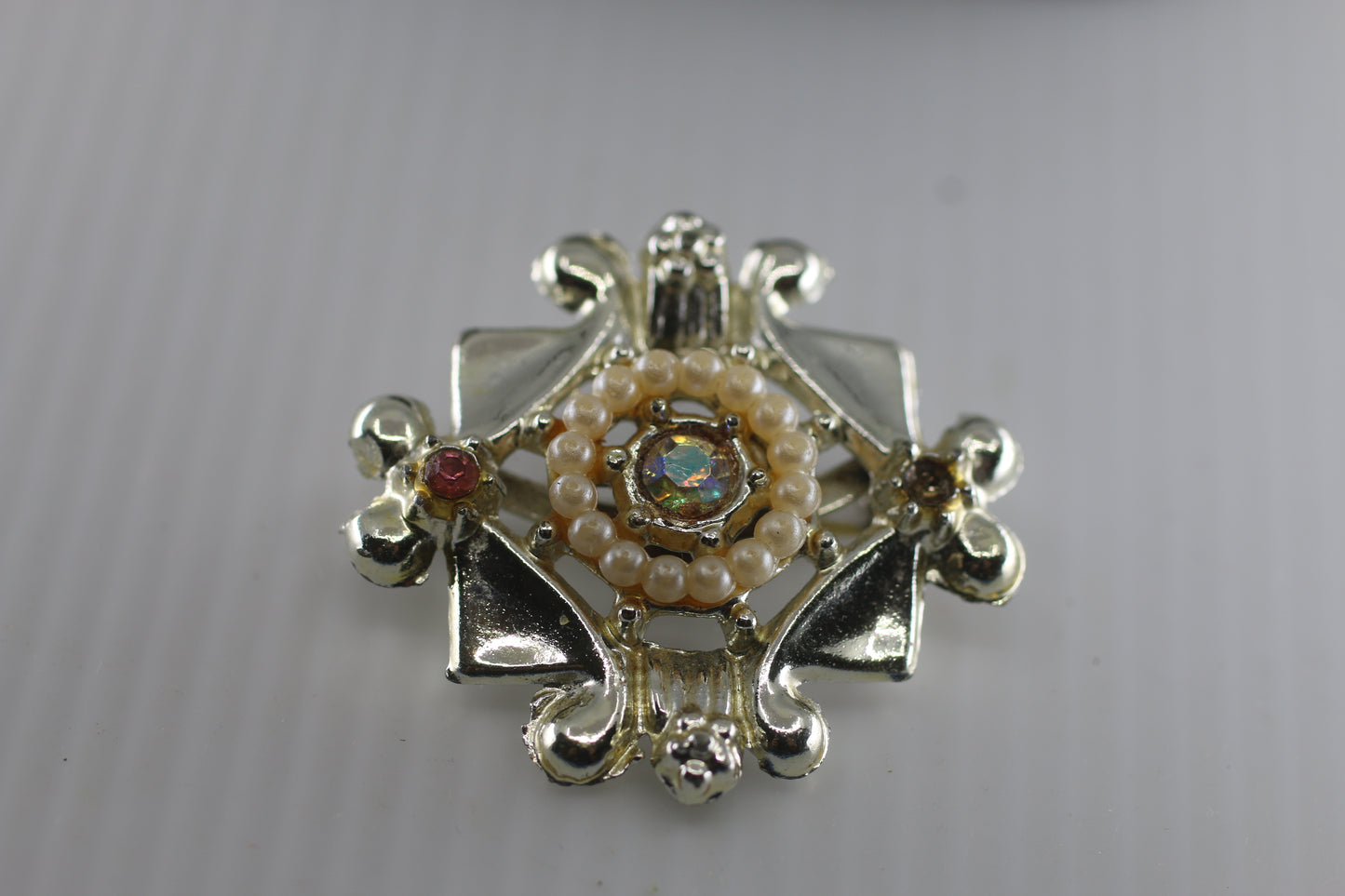 Vintage Golden tone Women's Jewellry Cross rhinestone faux pearls