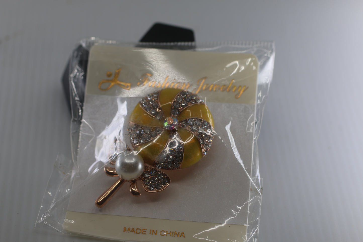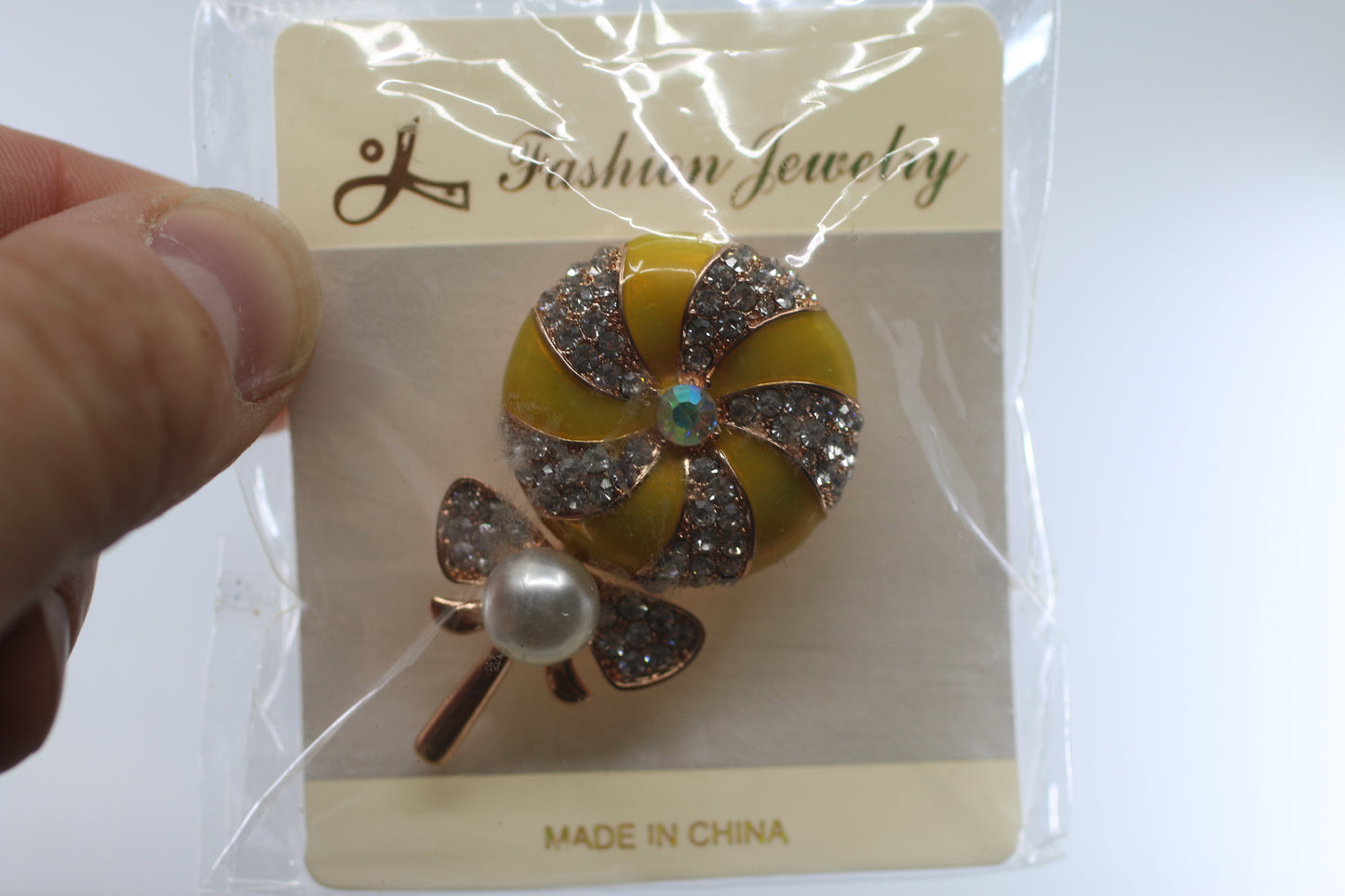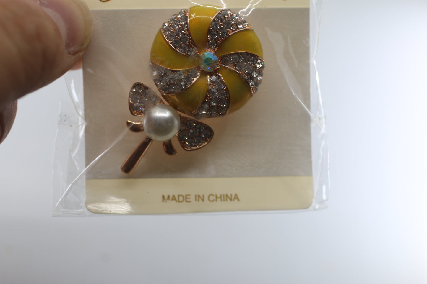 Brooch Lolypop Sealed rhinestone and faux pearls pin