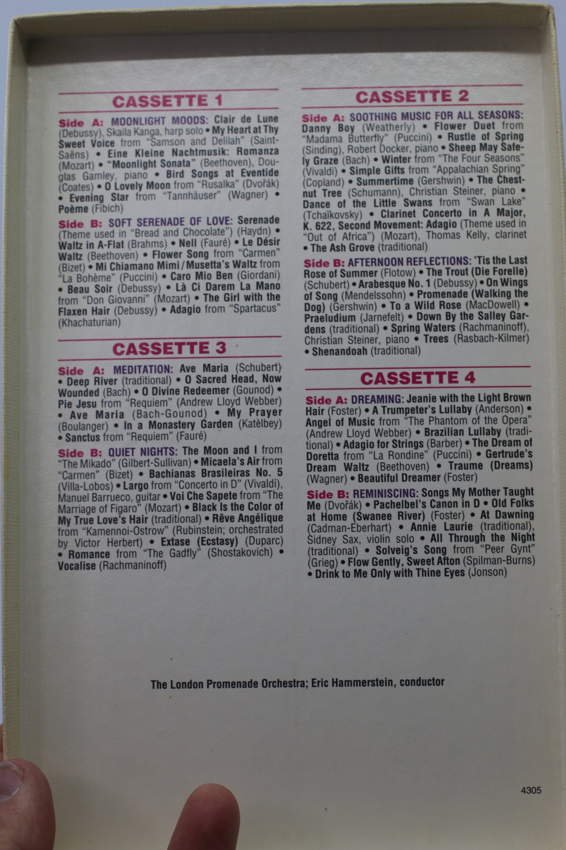 Reader's Digest Light Classics for Listening & Relaxation (1995), 4 cassettes included
