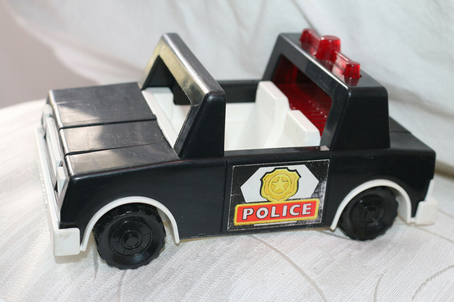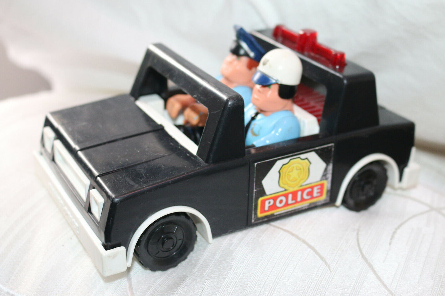 Vintage Fisher Price Husky Helpers Police Squad Car 1981 & 2 Police Man Toys Vtg