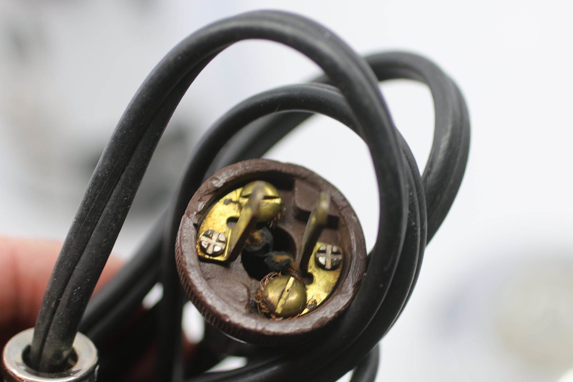 Original cloth-wrapped power cord shows age but appears not 100% intact at the end Pictured