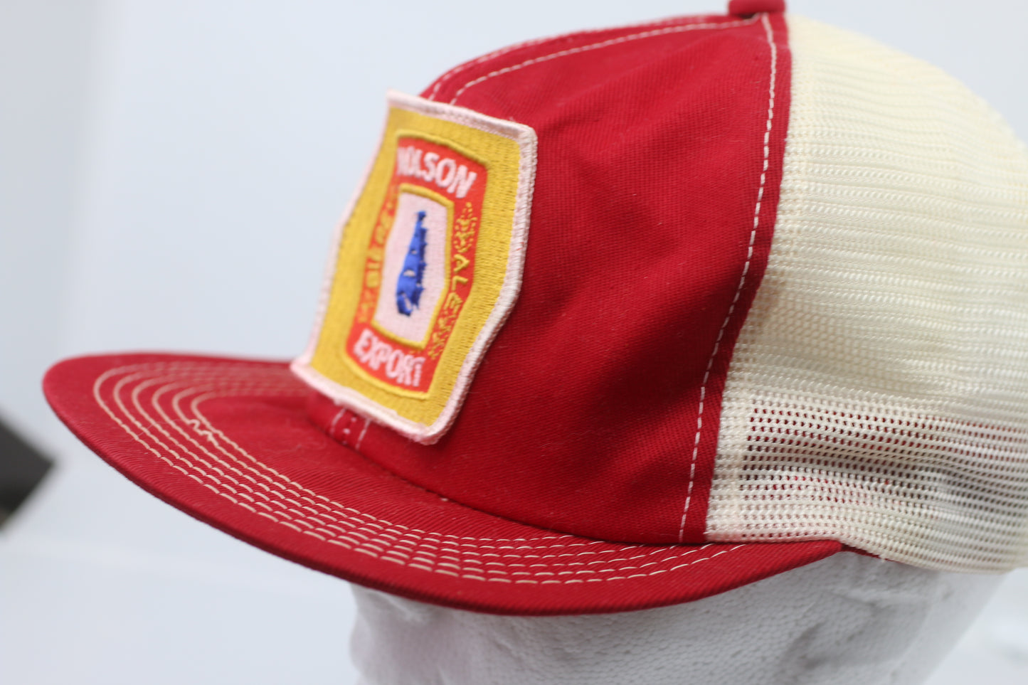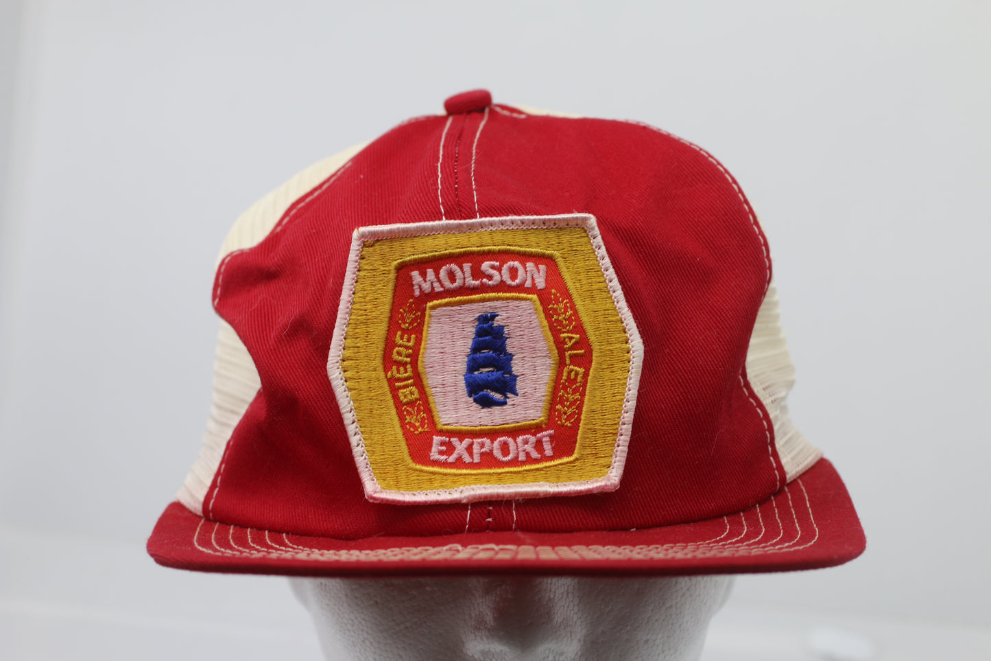 Vintage Molson Export Truckers Hat Baseball Cap Red Mesh Snap Back patch