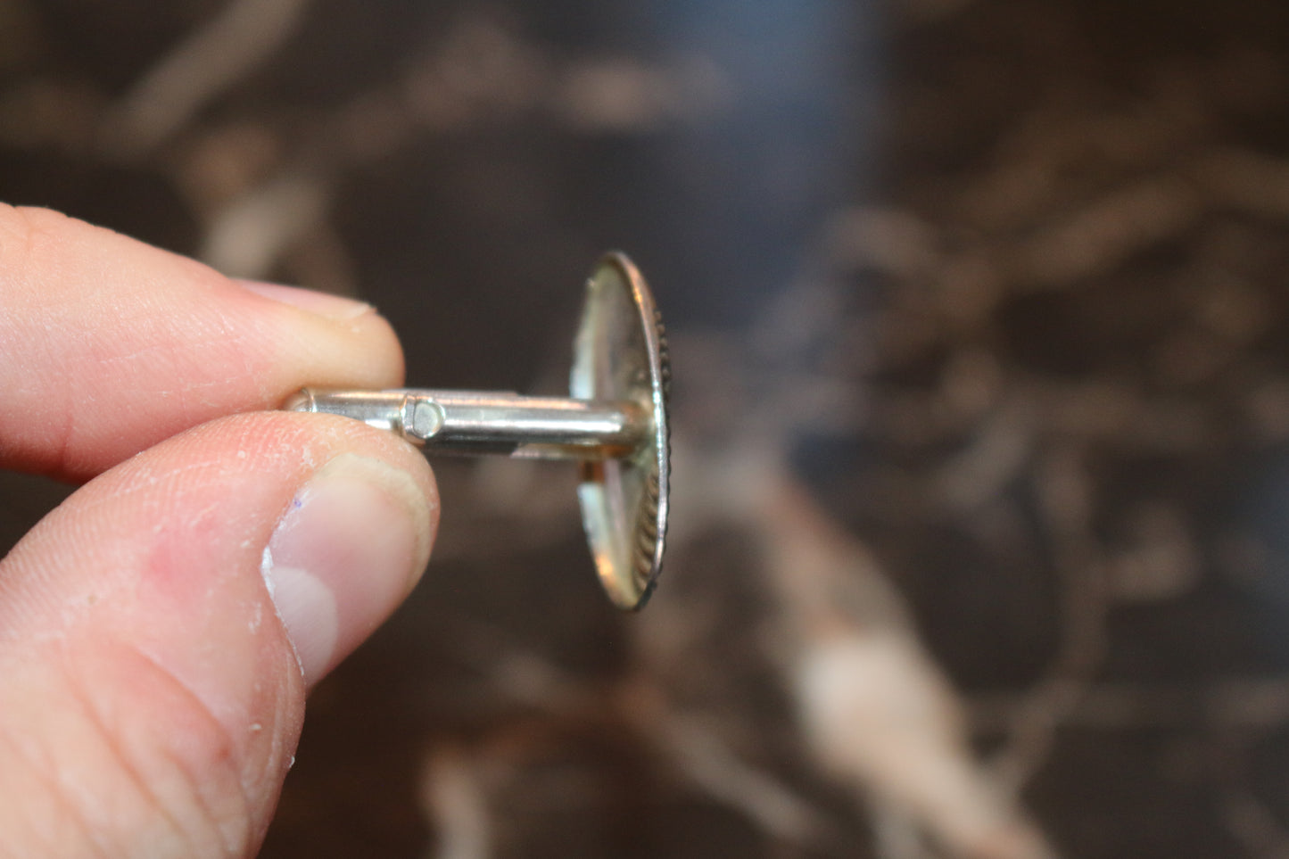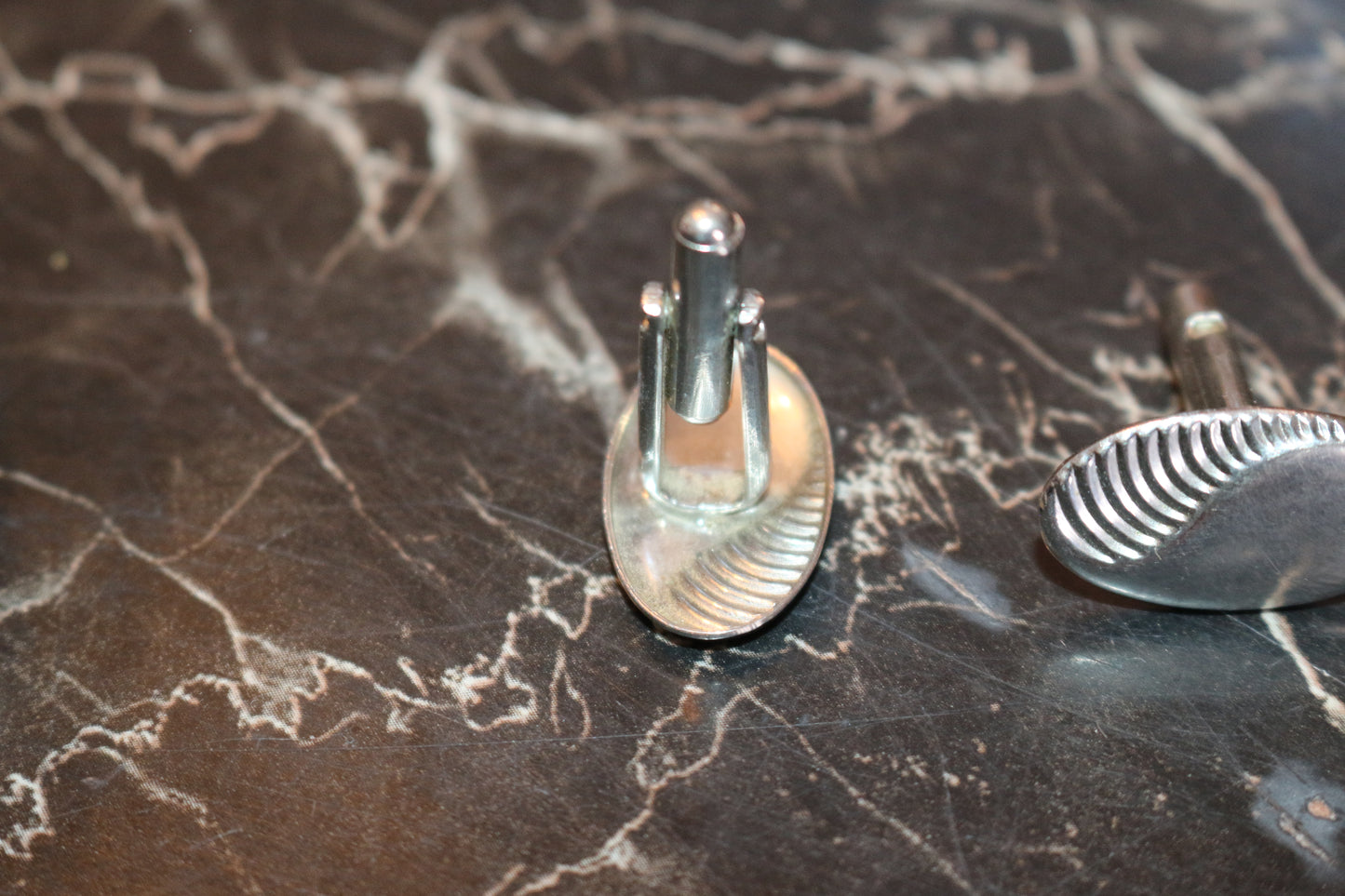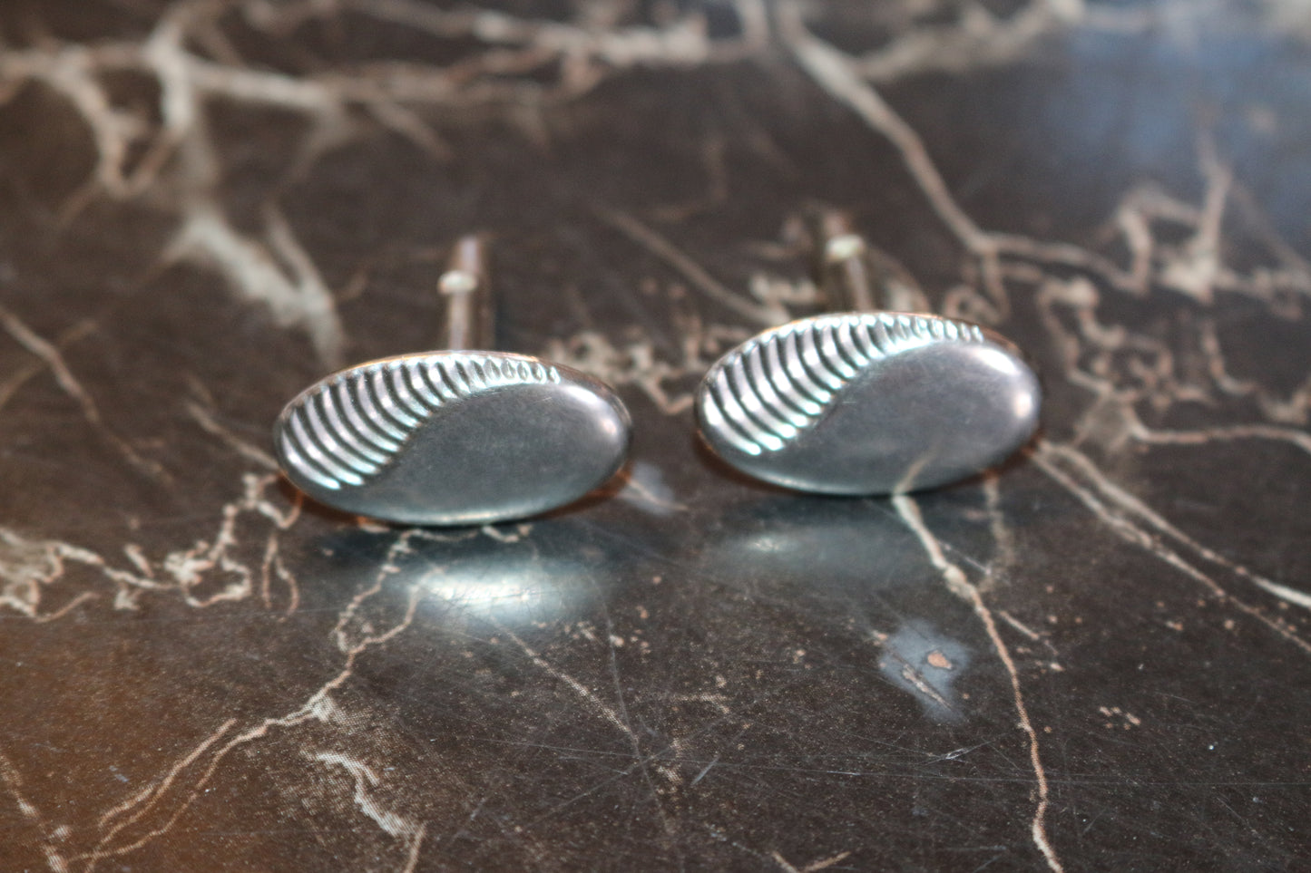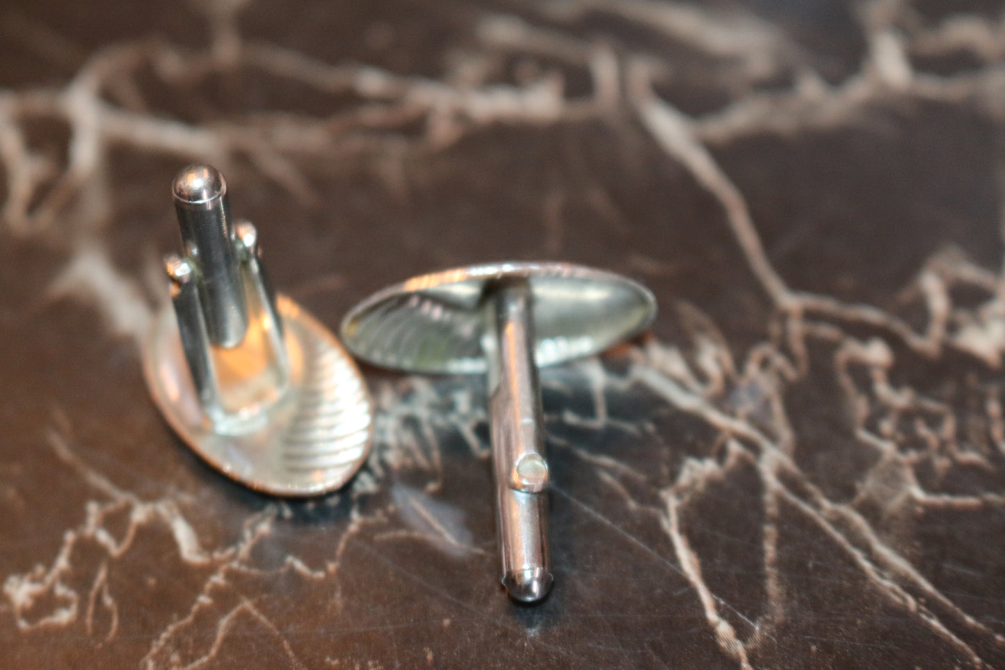 Classic Oval Cufflinks Bar Vintage Silver Tone Stand with lign