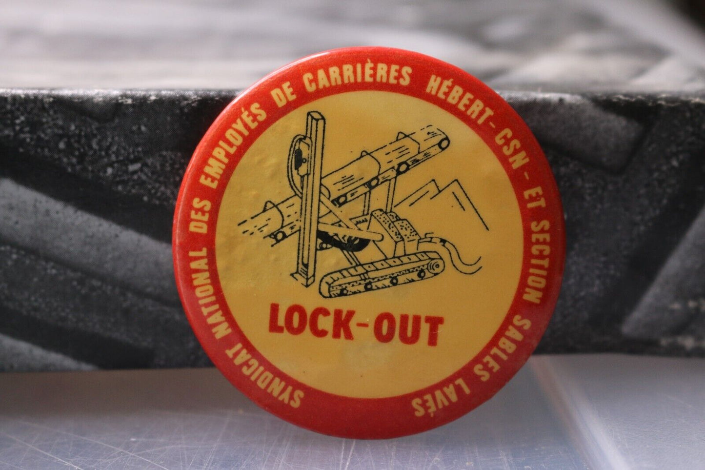 Vintage Macaron Pinback Québec Buttom Lock-Out Syndicat National Employés Carriè