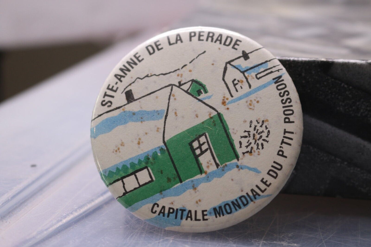 Vintage Macaron Pinback Québec Ste-Anne De La Perade Capitale Mondiale Poisson