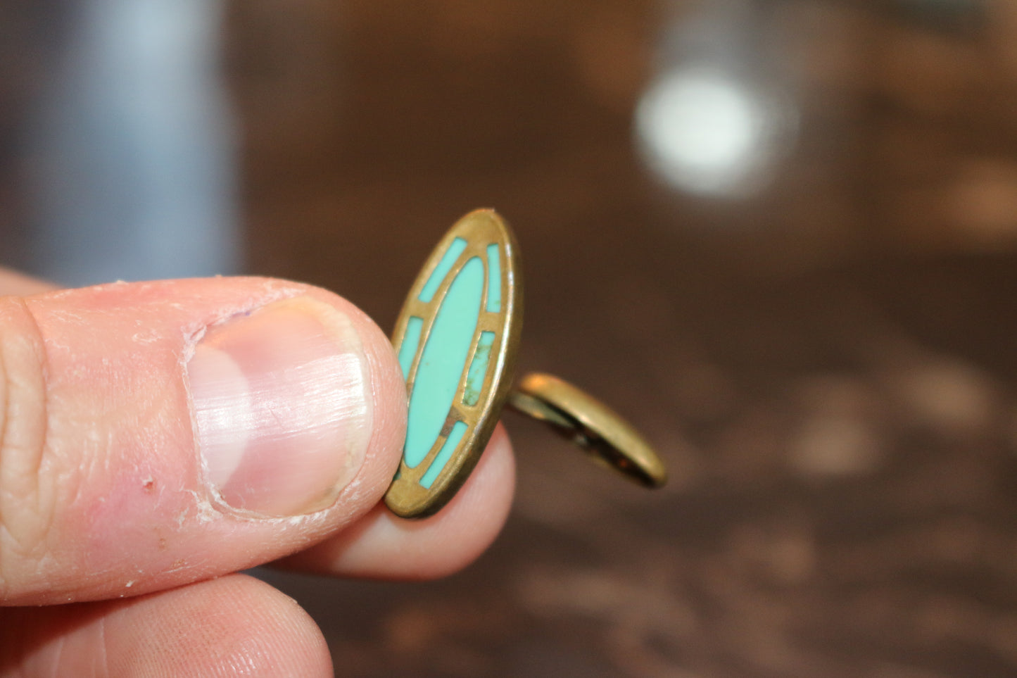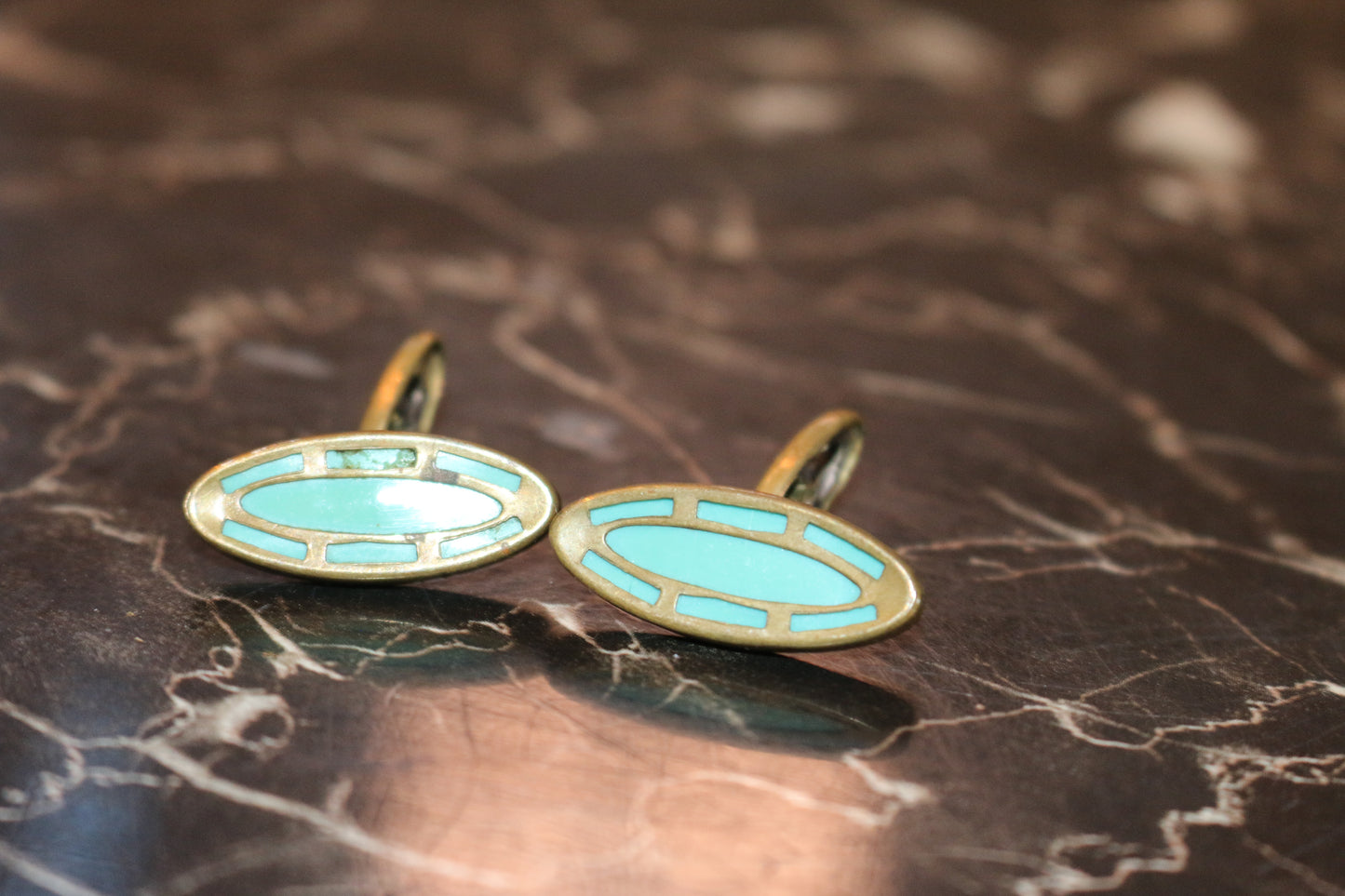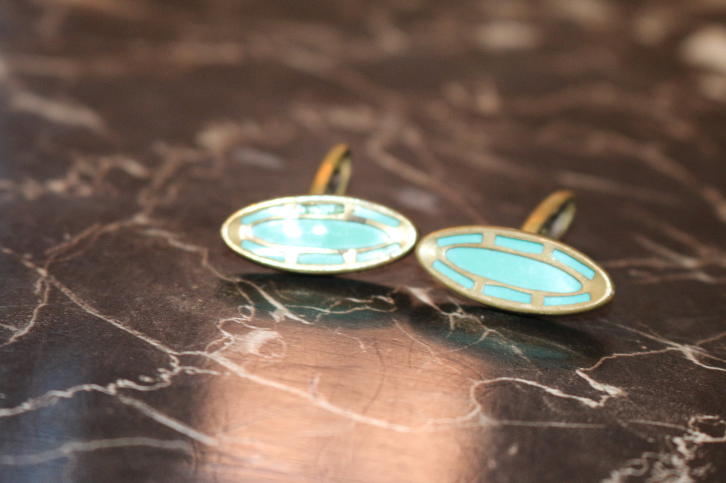 Victorian Gold Border Turquoise Set Dress Cufflinks Antique