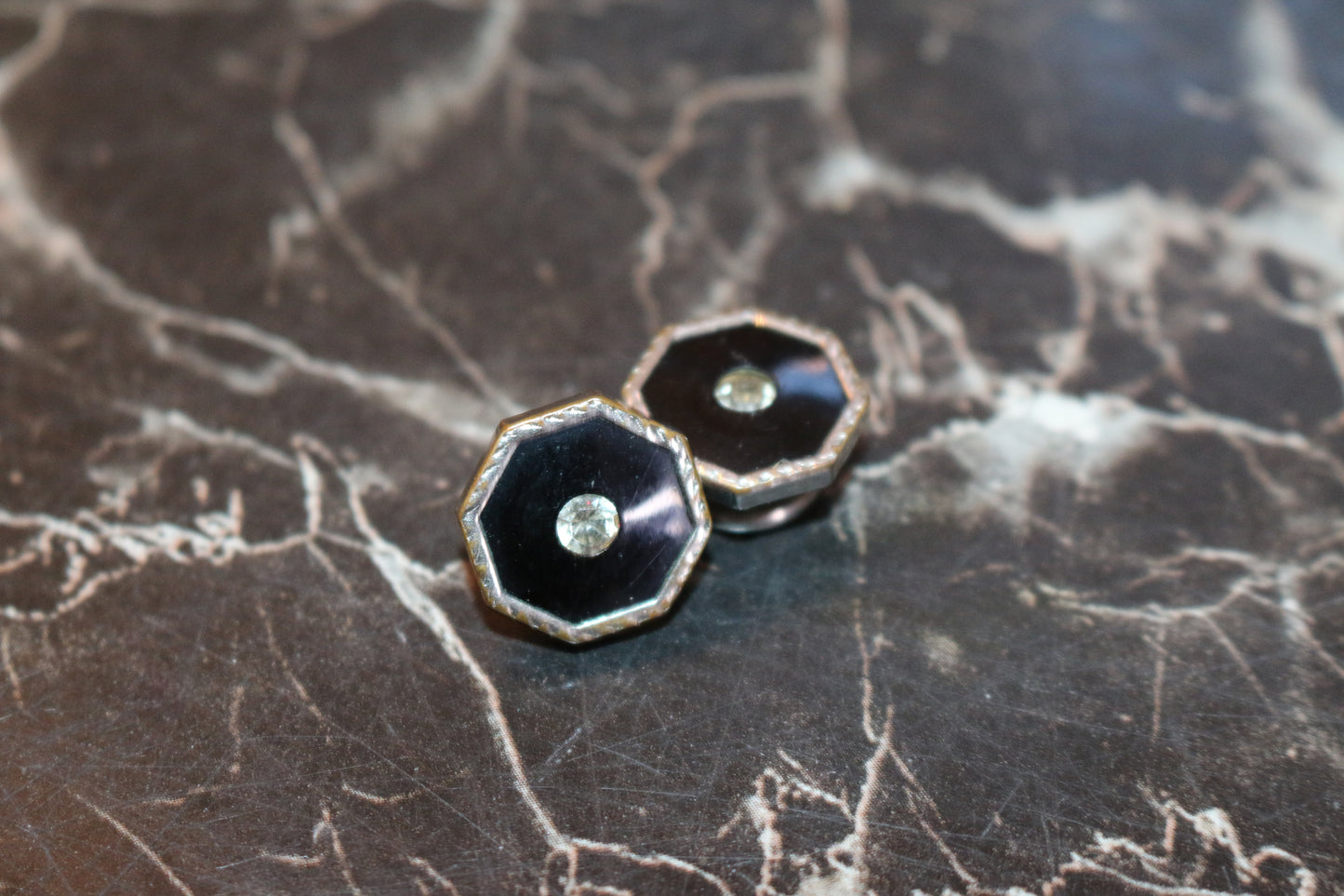 Vintage lof of 2 Black Onyx Octagon Stud Cufflinks