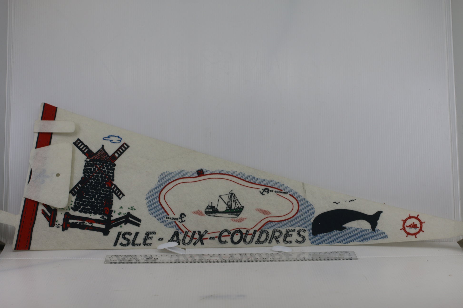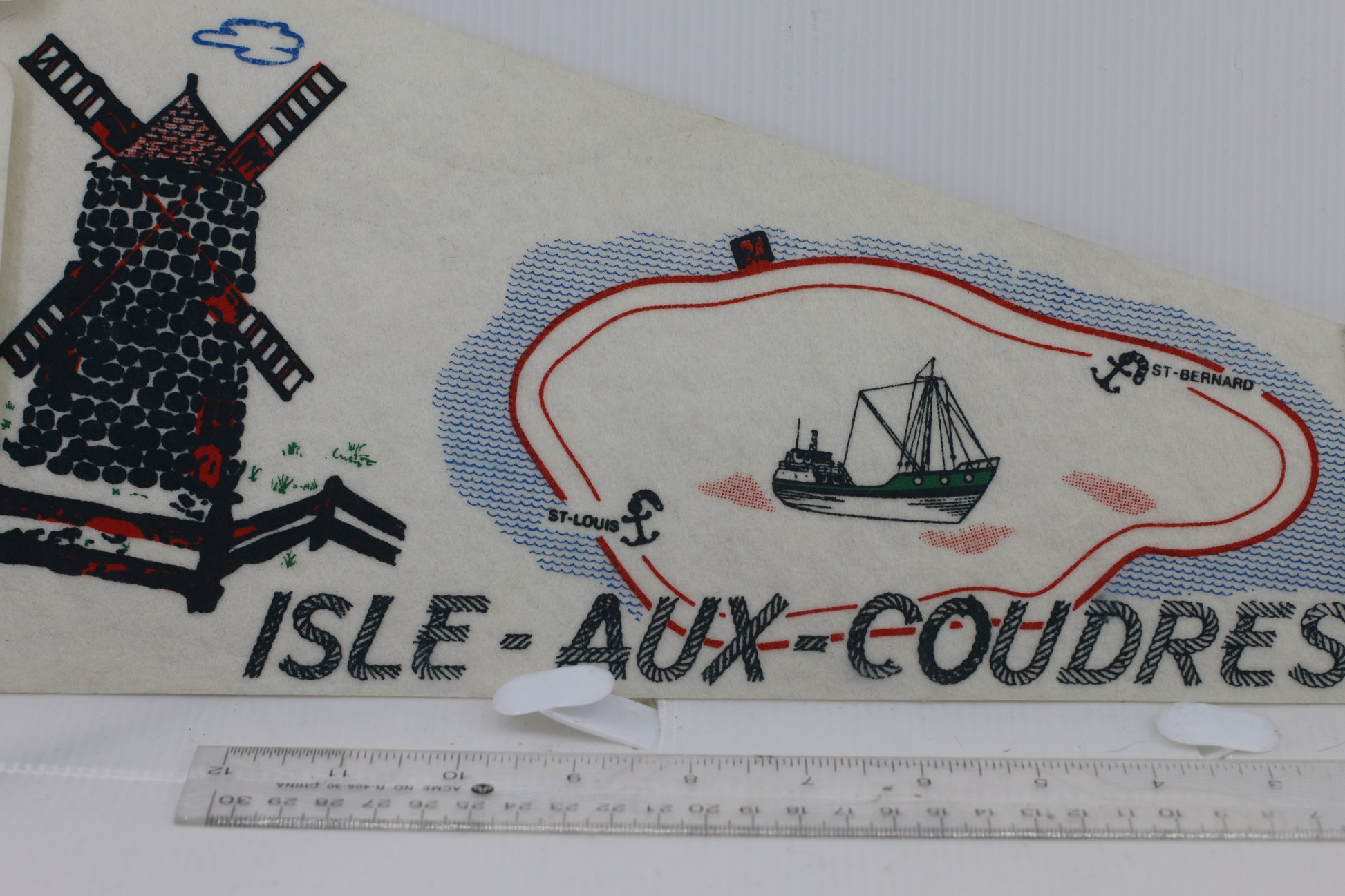 VINTAGE ILSE-AUX-COUDRES SOUVENIR FELT PENNANT FLAG