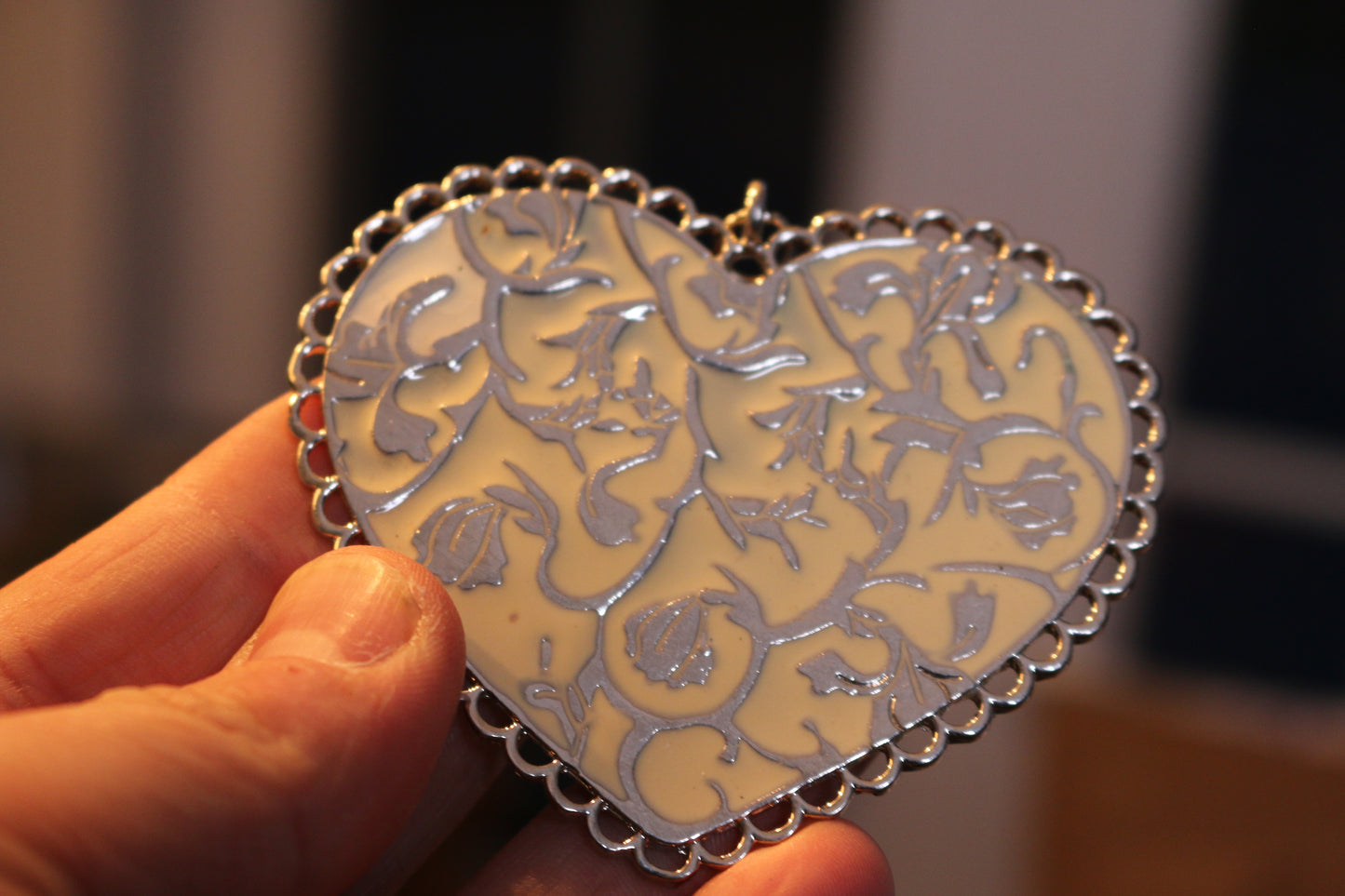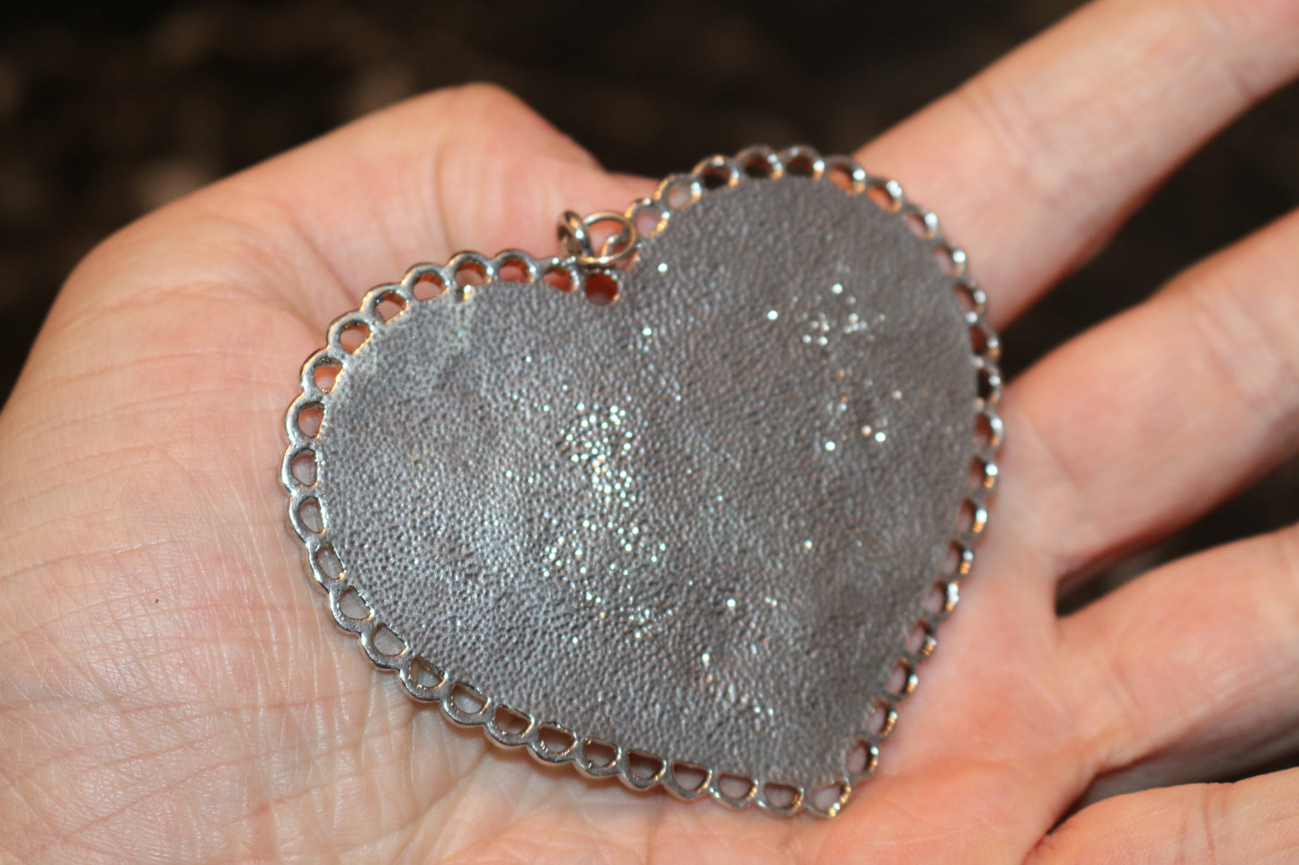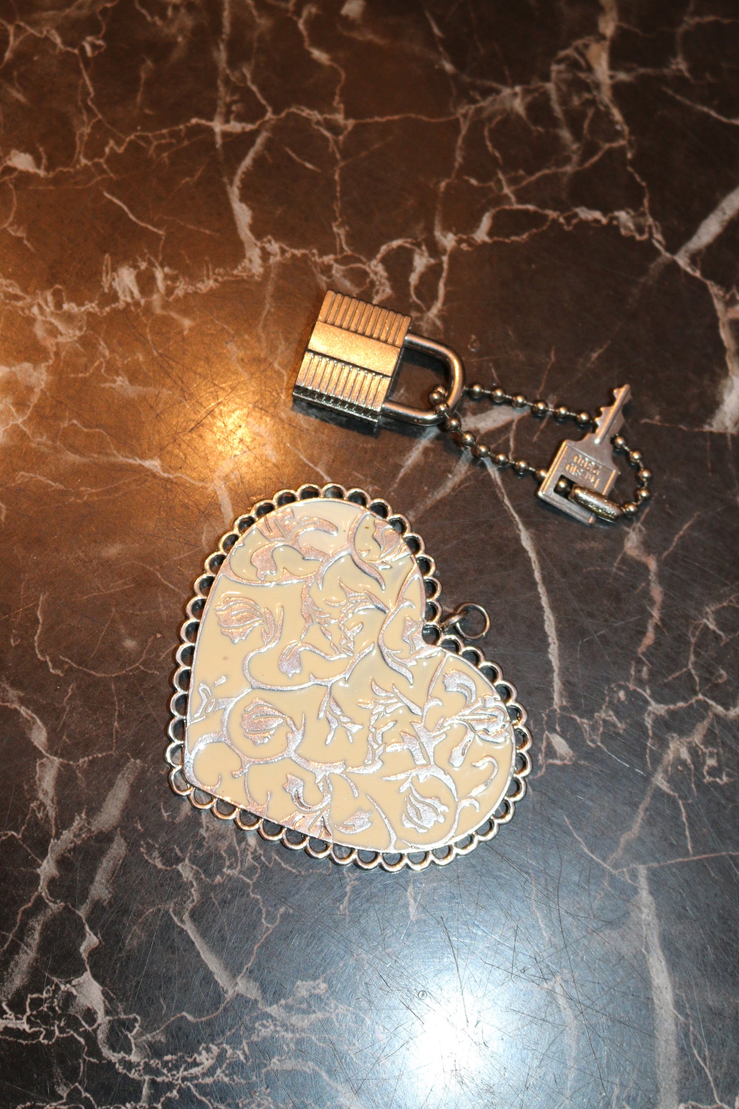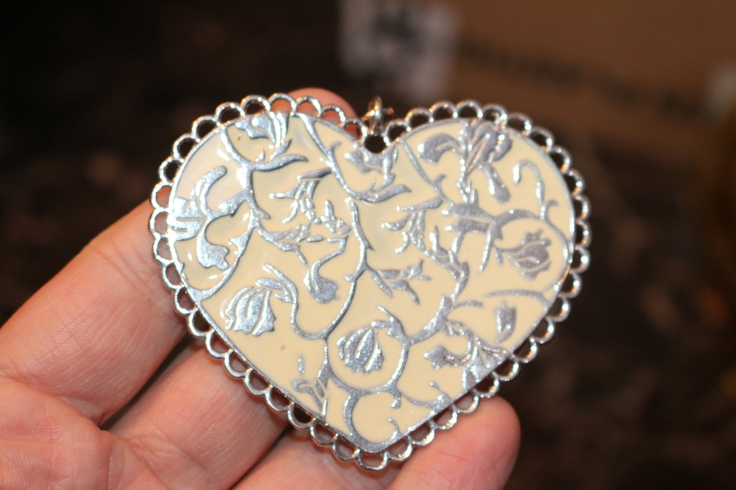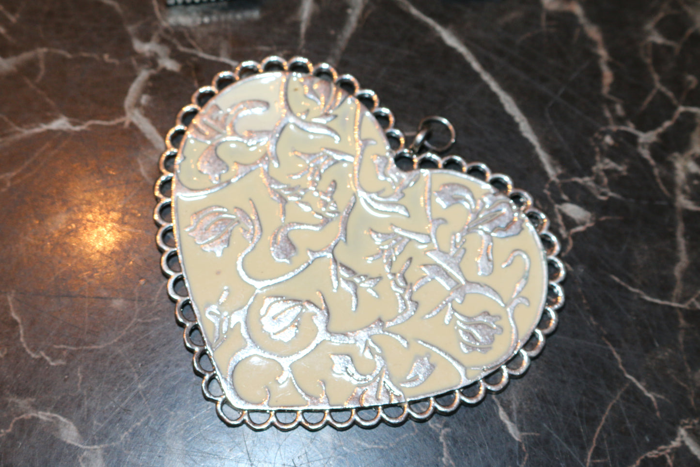 Vintage Large Heart for Necklace Ornate Vtg Silvertone and padlock