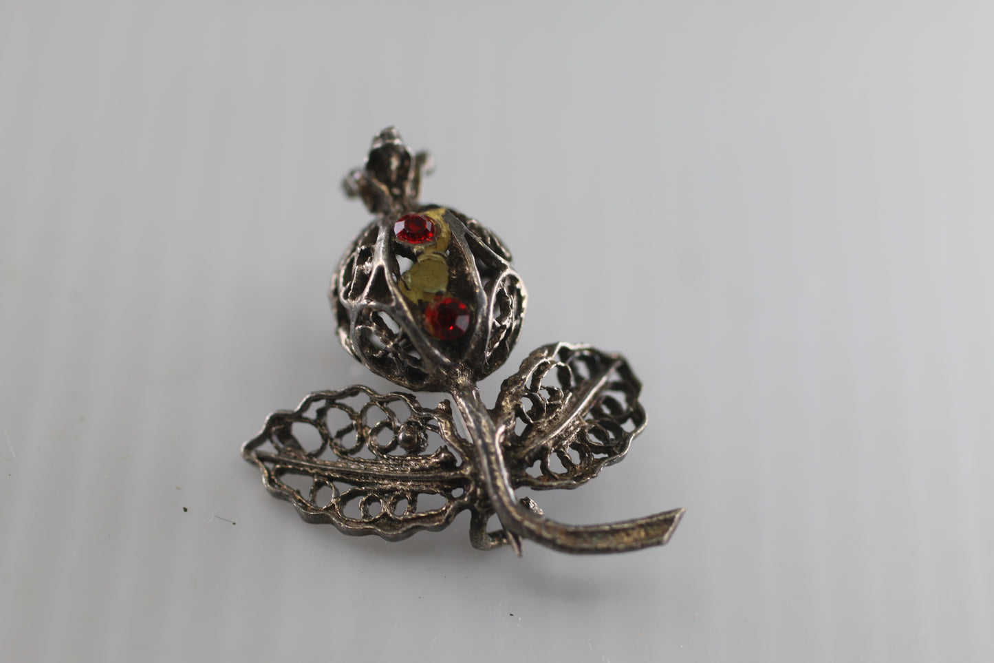 Vintage brooch leaf shape filigree & Red jewelry, gift woman 19 century style