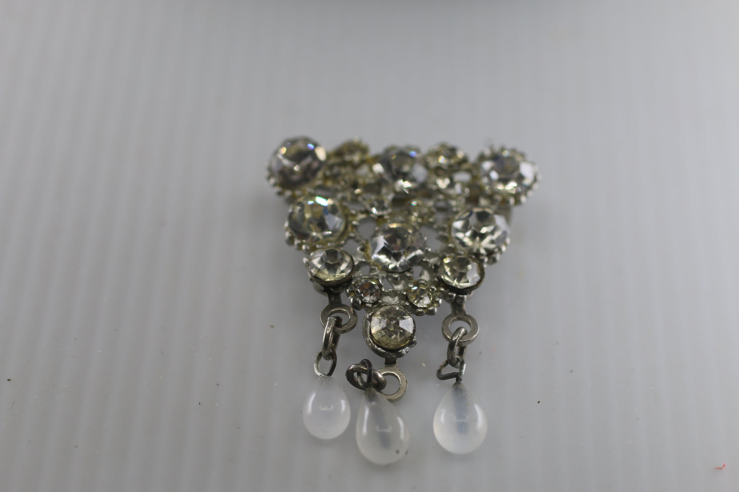 VINTAGE Crystal Brooch Pin with 3 faux perles diamond