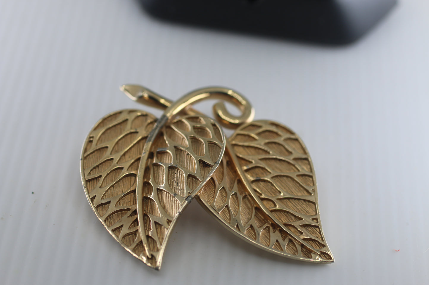 Vintage Boucher Leaf Brooch Pin, Gold Tone Heart Shaped Leaves Brooch