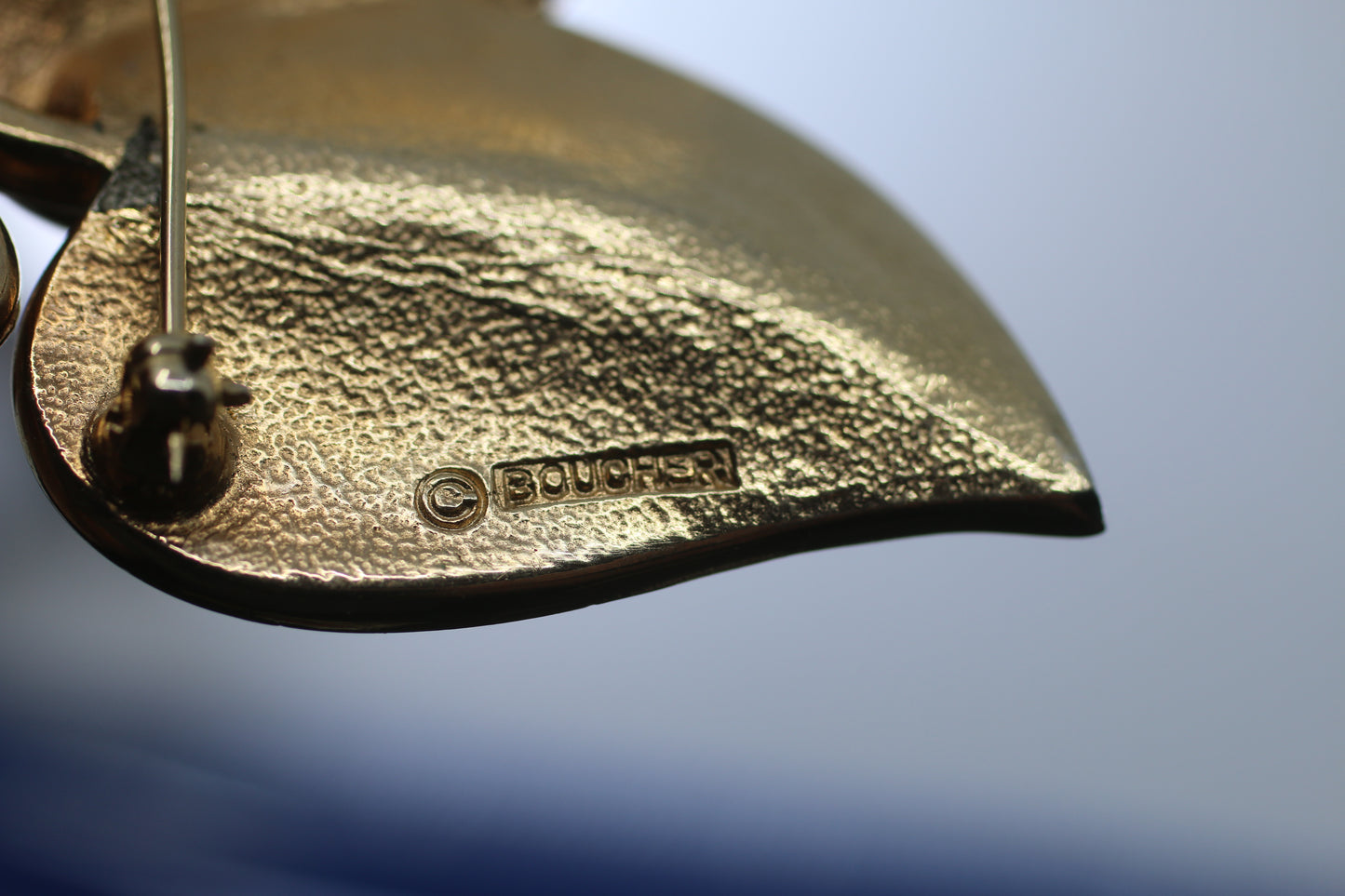 Vintage Boucher Leaf Brooch Pin, Gold Tone Heart Shaped Leaves Brooch, Designer Brooch, Fall Brooch, Statement Brooch
