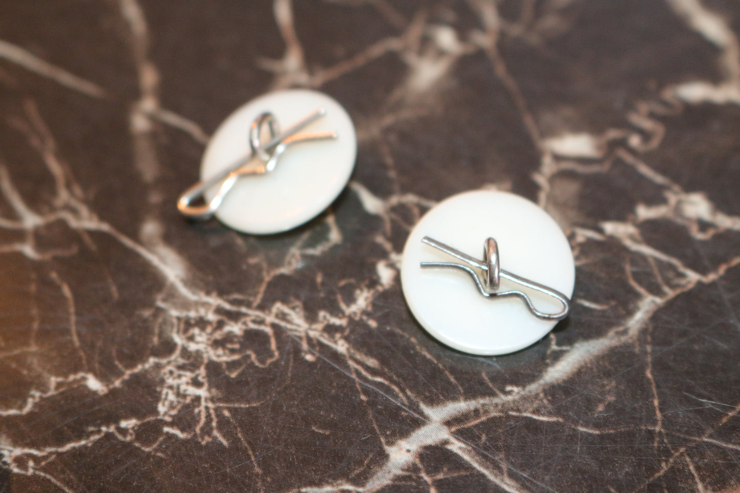 Vtg 2x Mother of Pearl Buttons w/Metal Clips-5/8" - Tuxedo Shirt, Blouse, Dress-d