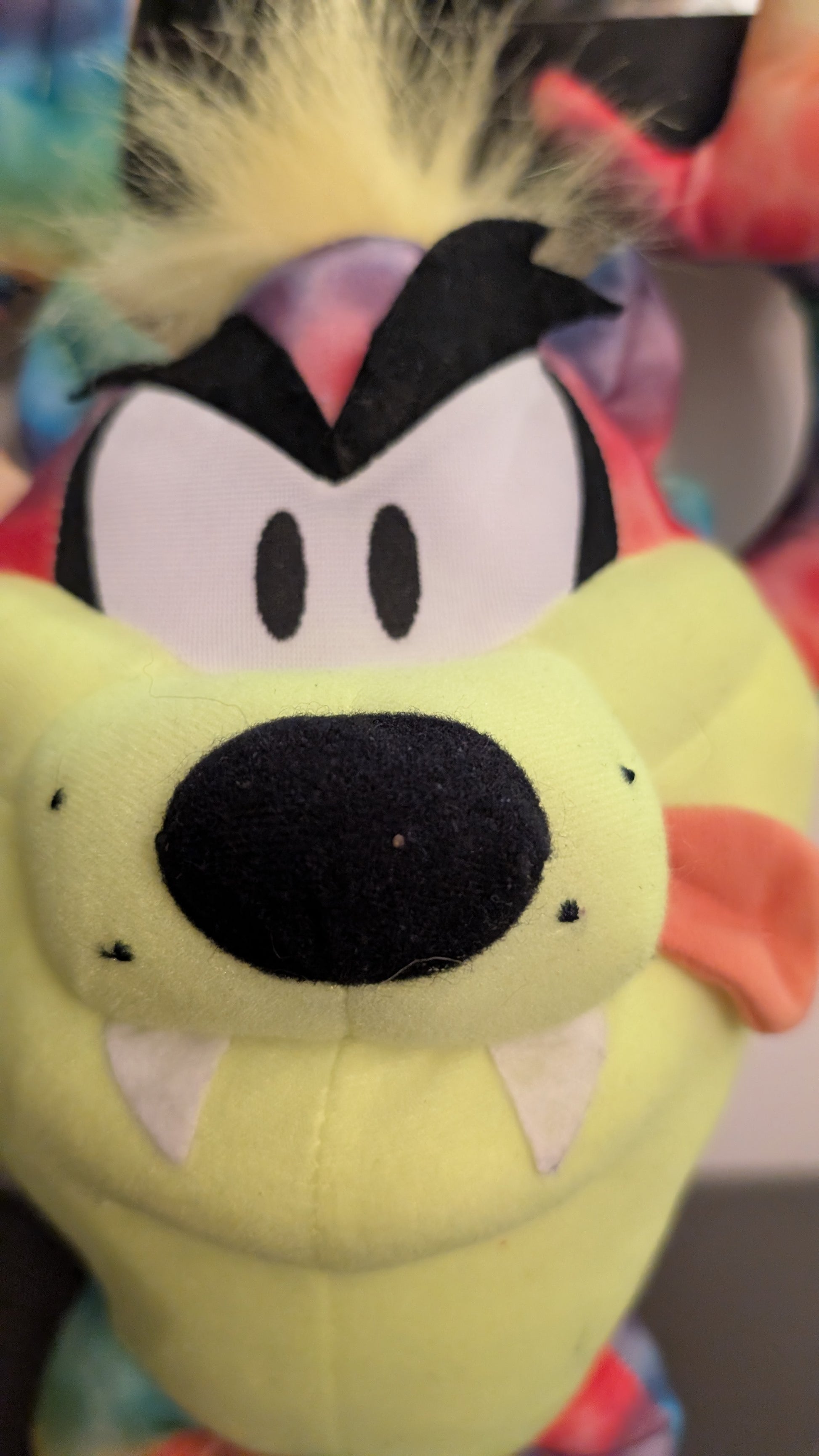 Looney Tunes Plush Tazmanian Devil Tie Dye Taz Rainbow Colors WB Stuffed Animal 14"
