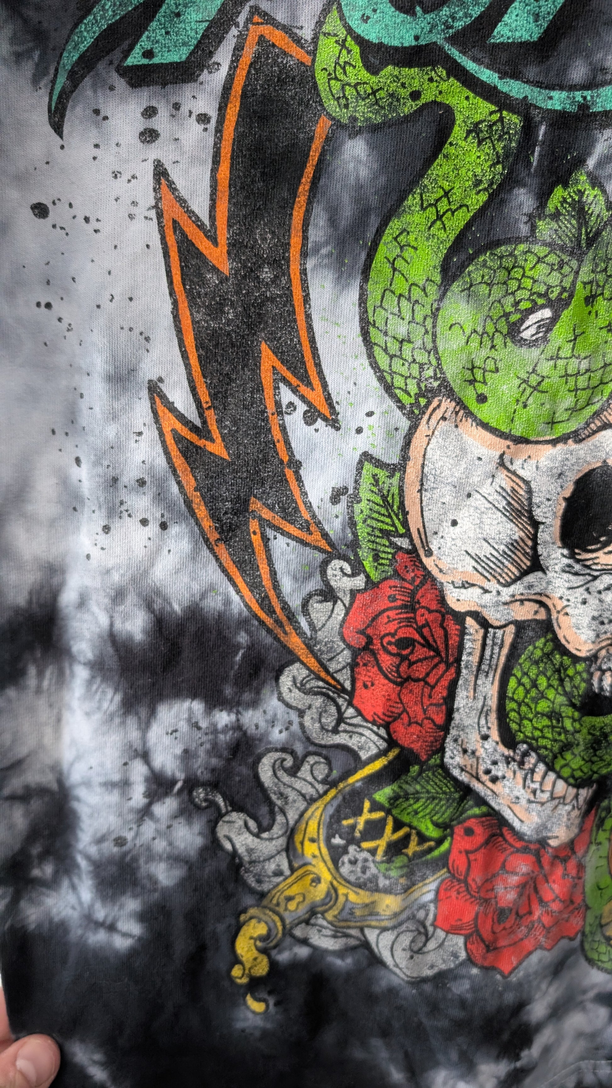 Poison Band T-Shirt Skull Snake Graphic Tie Dye Black Adult Small