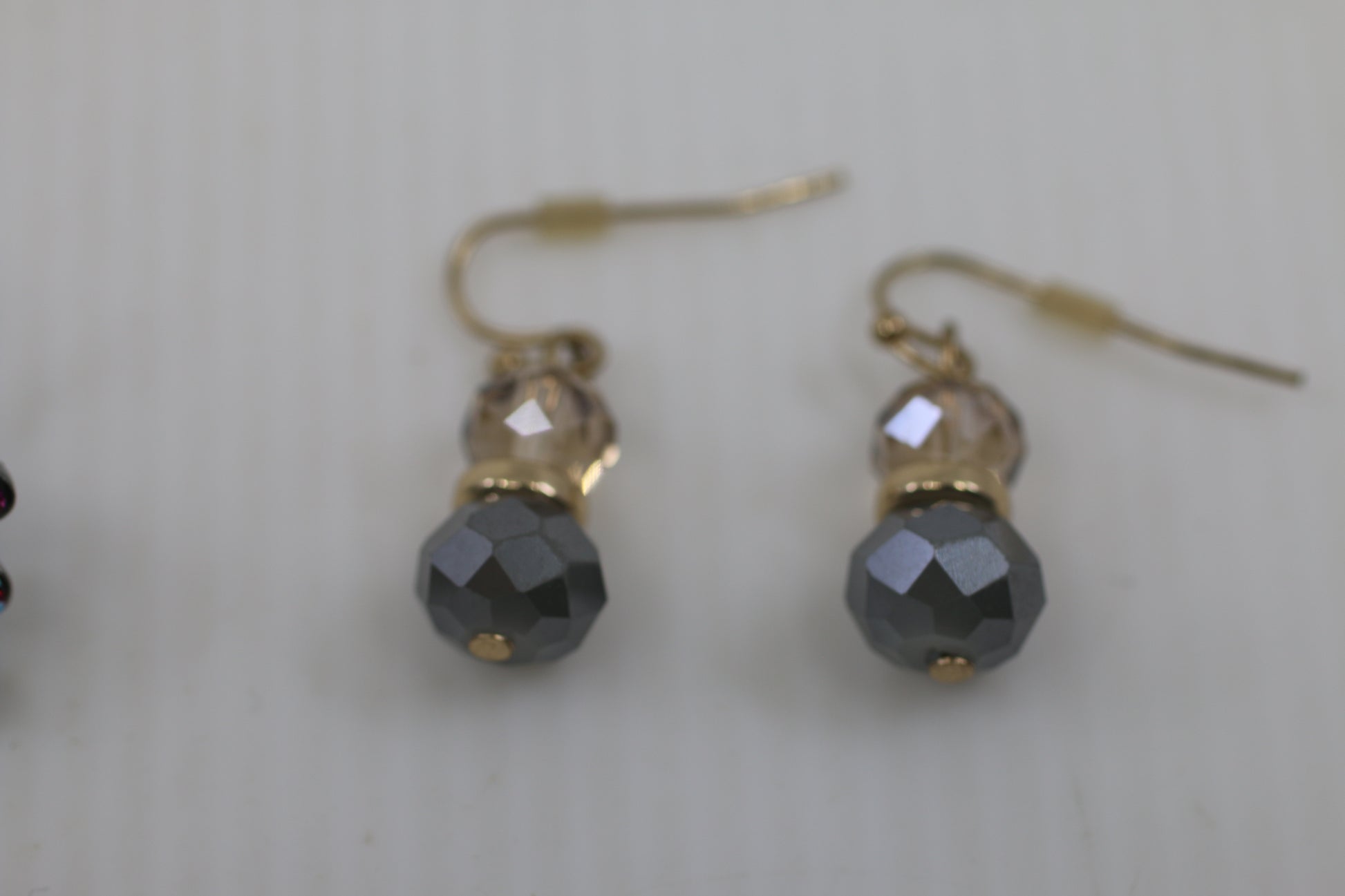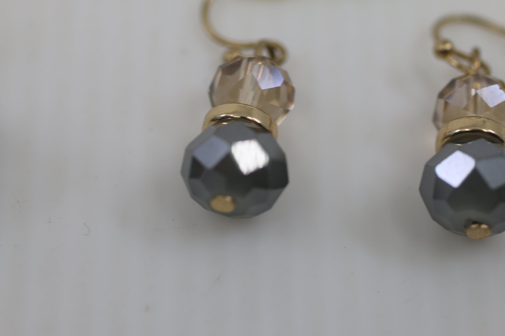 1 pair gold-tone hook earrings with faceted gray & champagne crystal beads