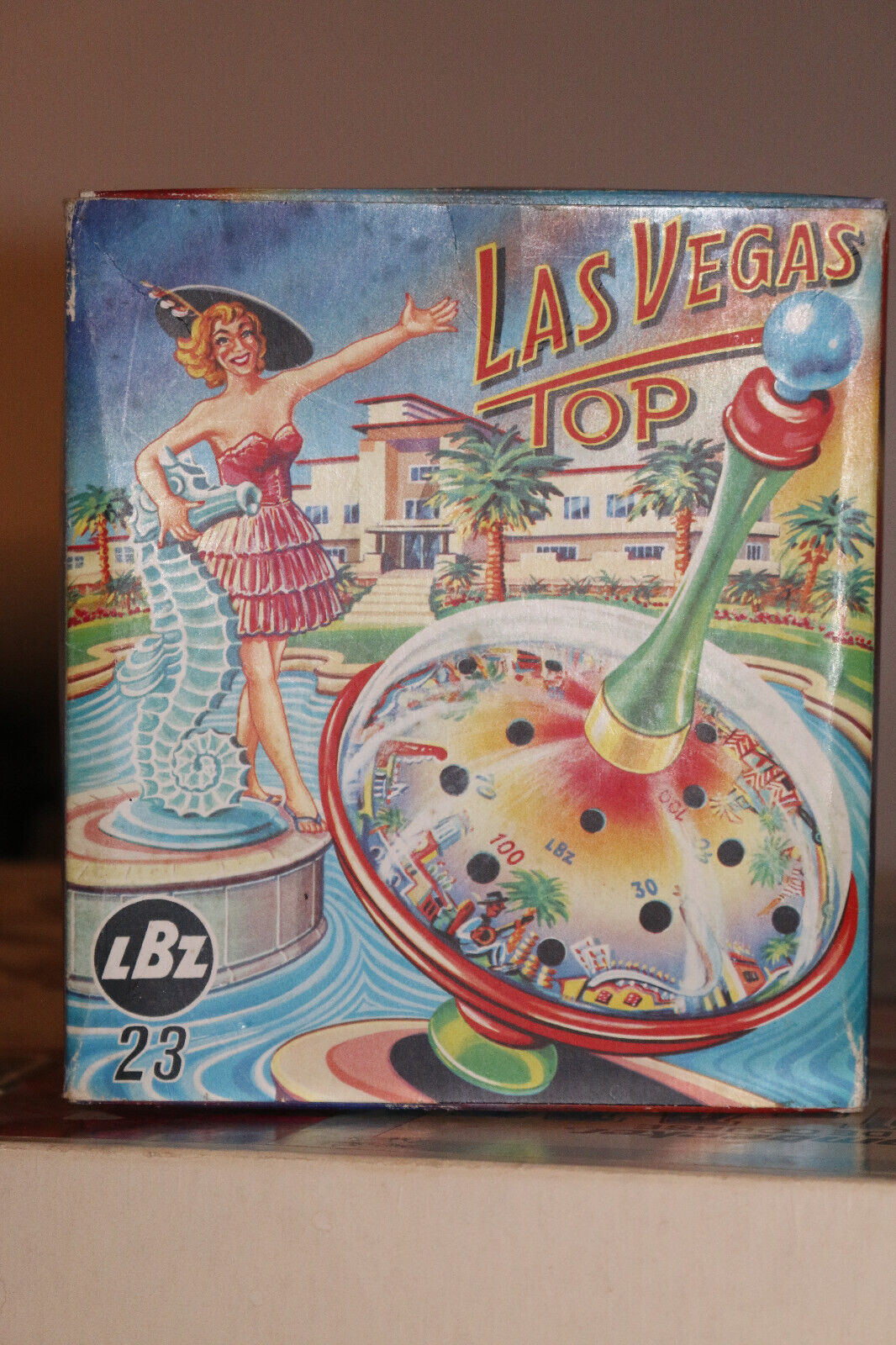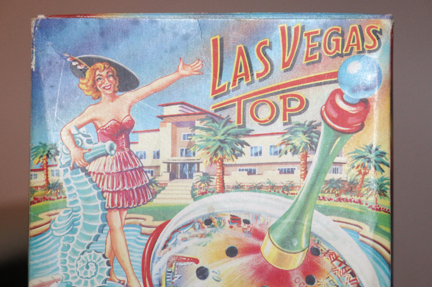 Rare Las Vegas Top Spin Spinning Lbz #23 Vintage Mini Game Inside Box Work Tin